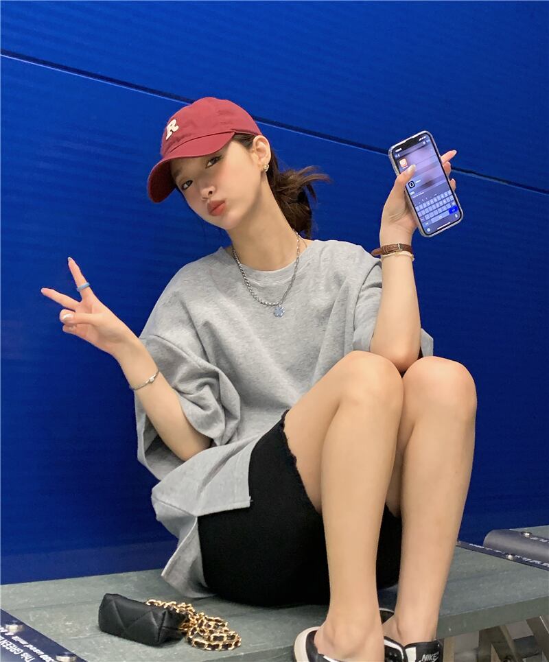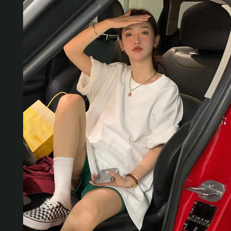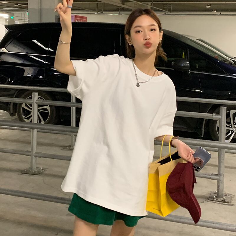 ホワイトTシャツ夏服ルーズトップス NEW 夏物 ミドル丈 SYJ43700252421