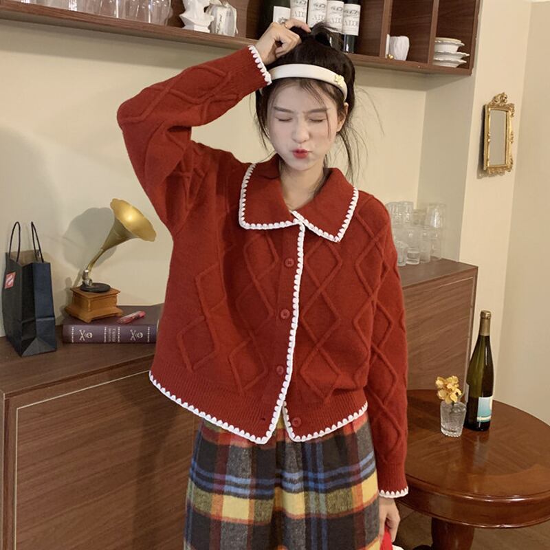 レッドセーター コート スプリング秋物ニットカーディガン 春物 オータム SYJ29454898936