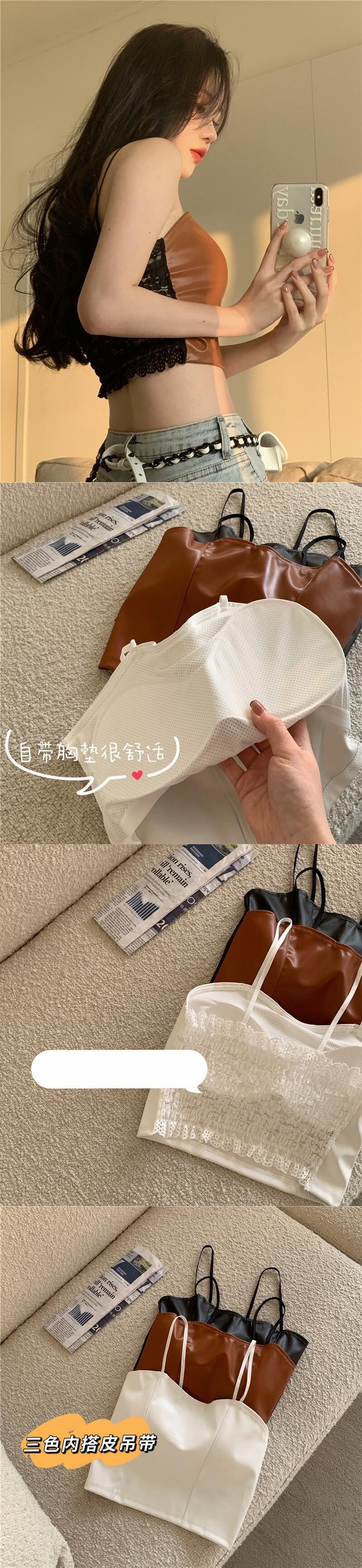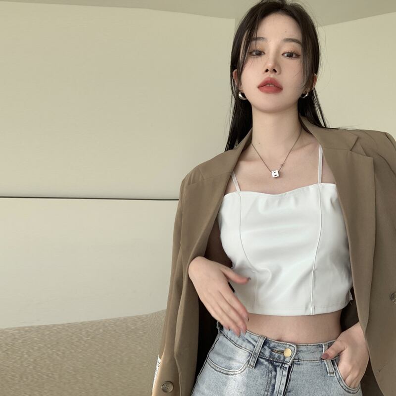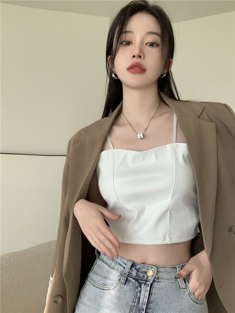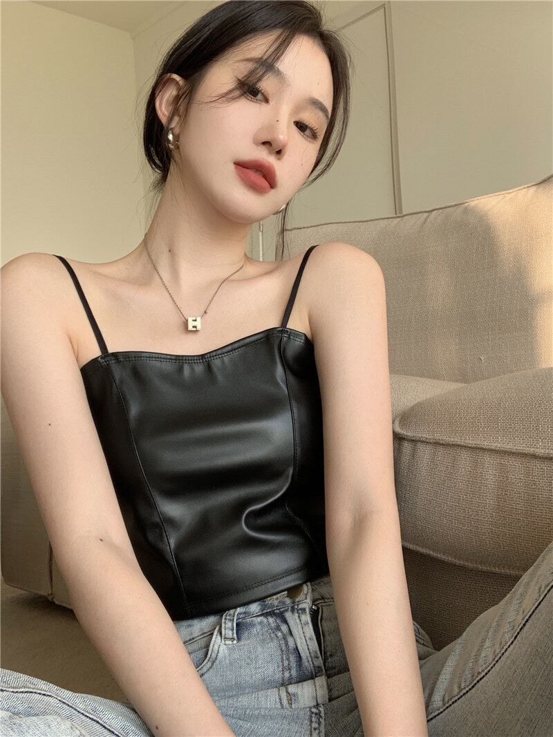 スタイルブラックレザー夏服トップス ショート 夏物 SYJ22458164081