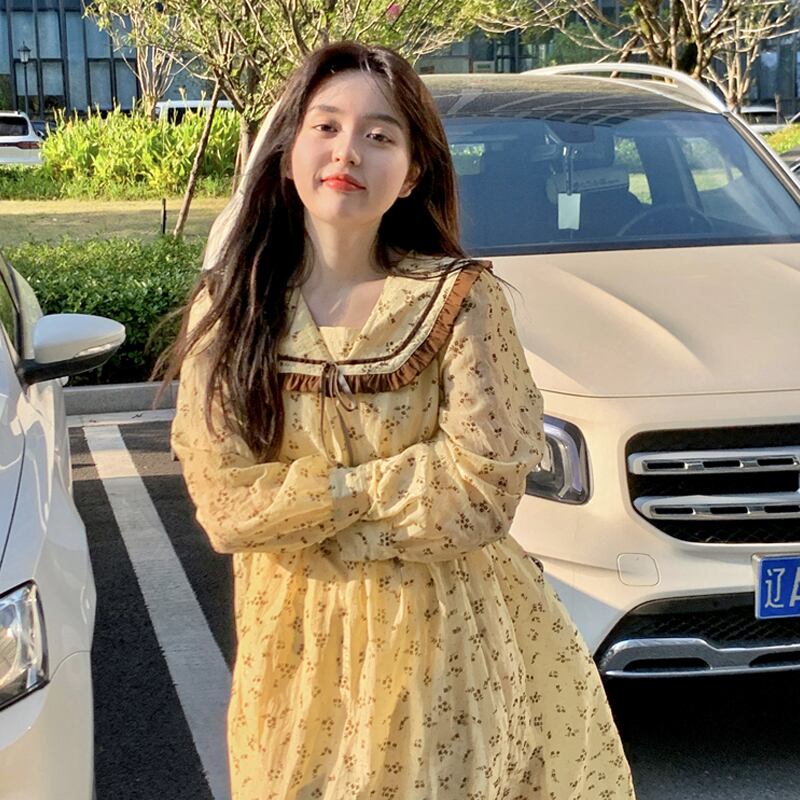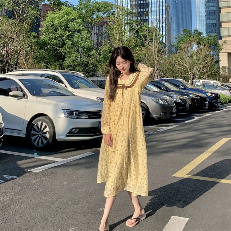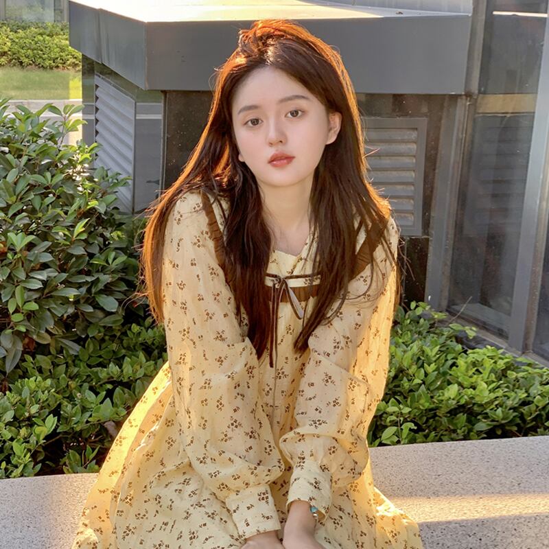 フローラルロングワンピーススプリングスカート 大人ガーリー スウィート キュート カジュアル 春物 花柄 長袖 SYJ78585203897