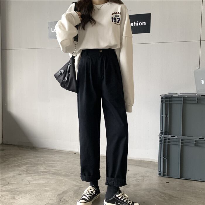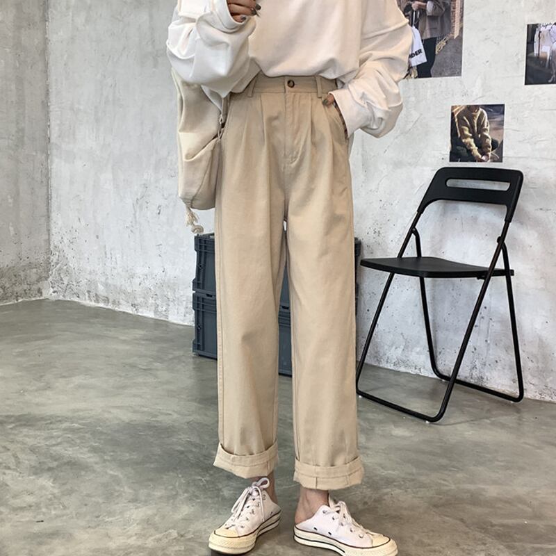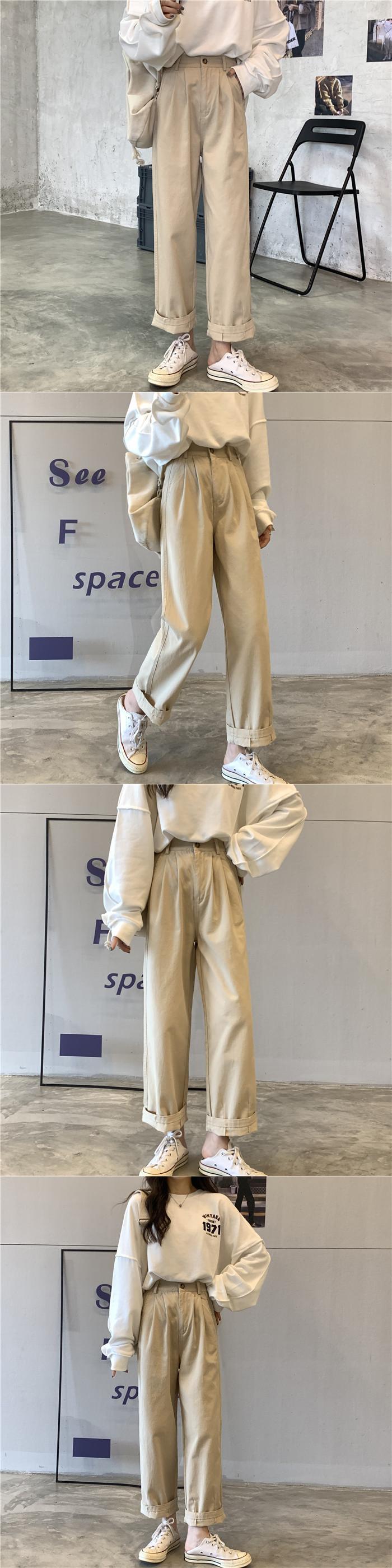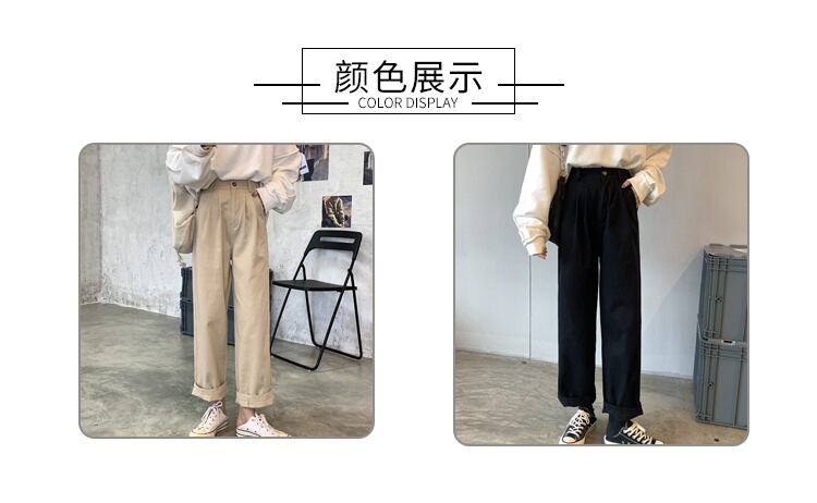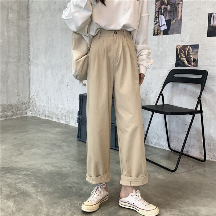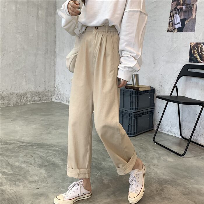 カーキルーズパンツ 夏服薄手ハイウェストスプリング秋物カジュアルNEW 春物 夏物 オータム ウエスト SYJ92143408119