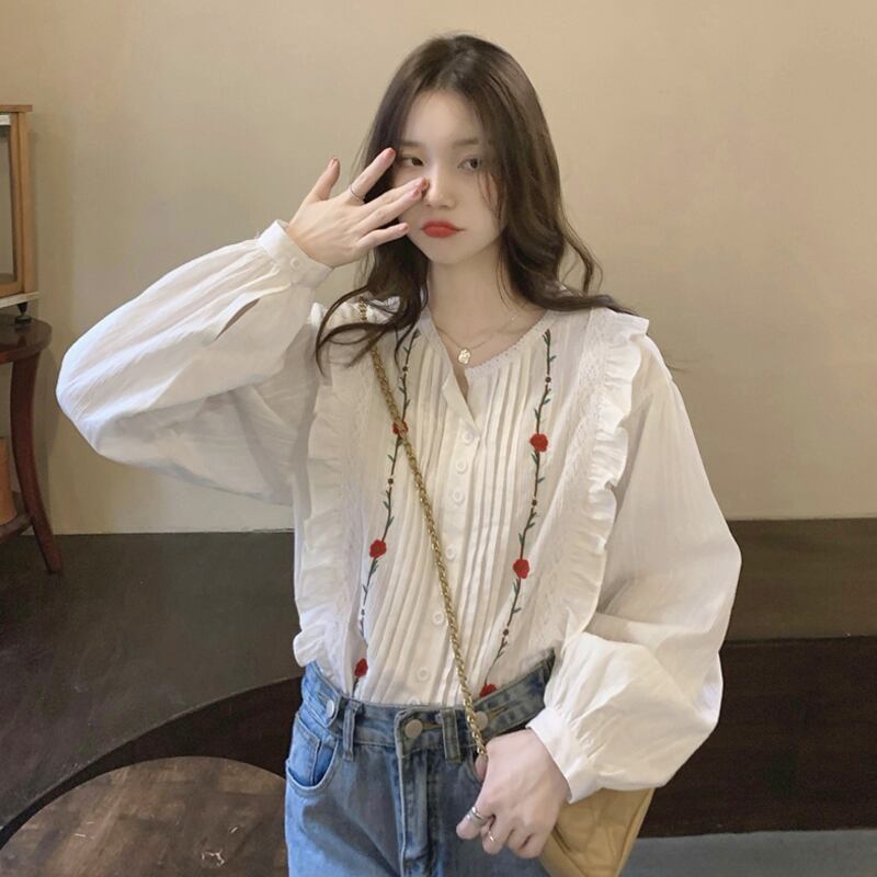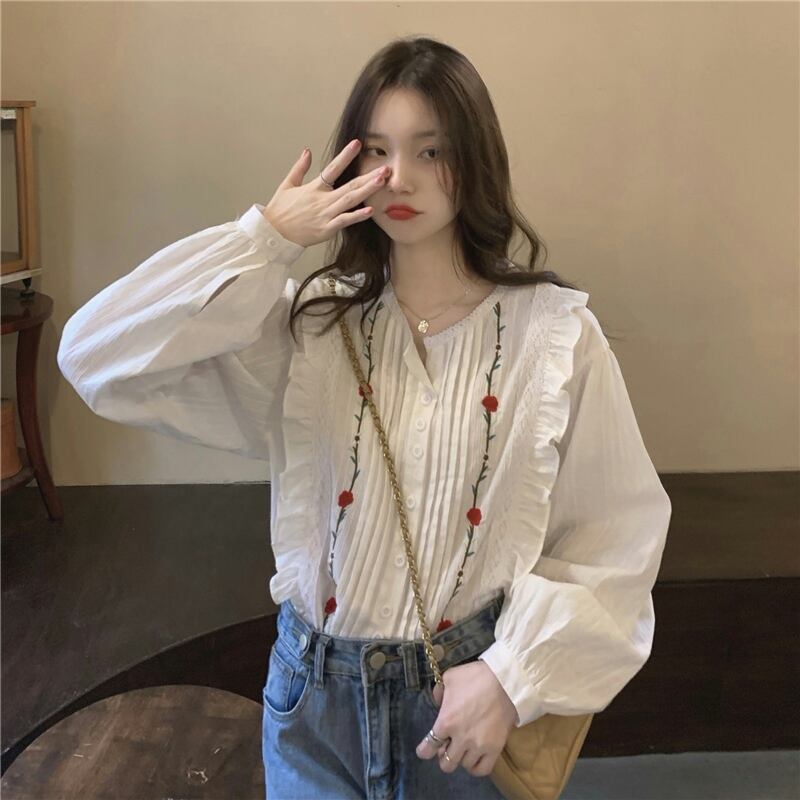 ホワイトシャツ スプリングルーズトップス ロング 大人ガーリー スウィート キュート カジュアル 春物 長袖 SYJ36589204695