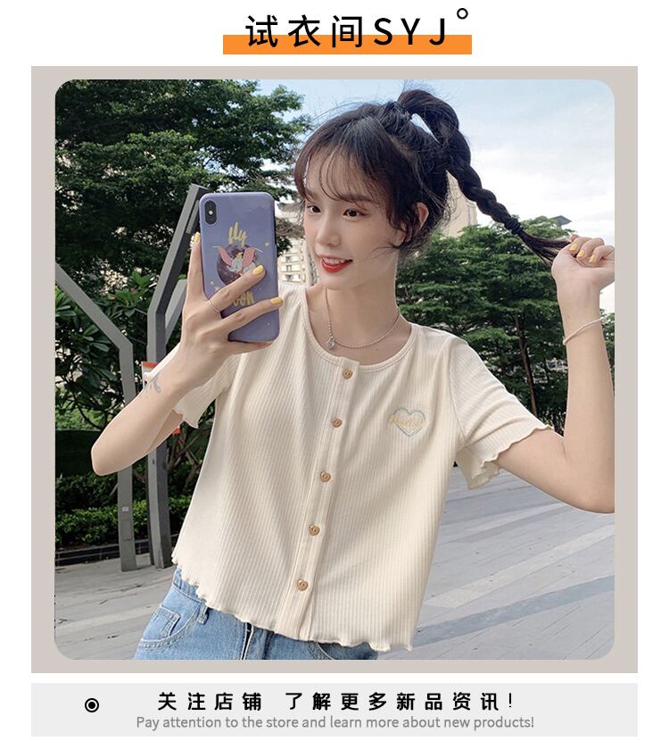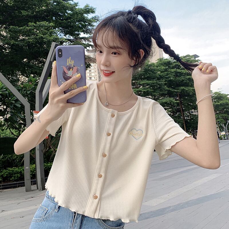 ショートTシャツ夏服韓国ファッションスタイルトップス NEW コットン 大人ガーリー スウィート キュート カジュアル 夏物 SYJ64211090457