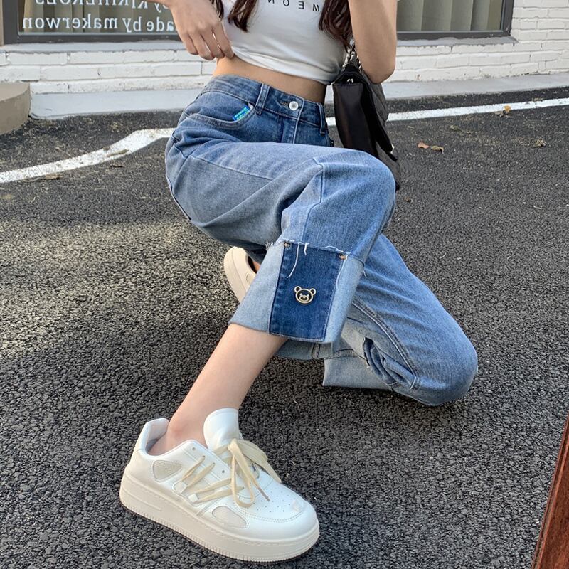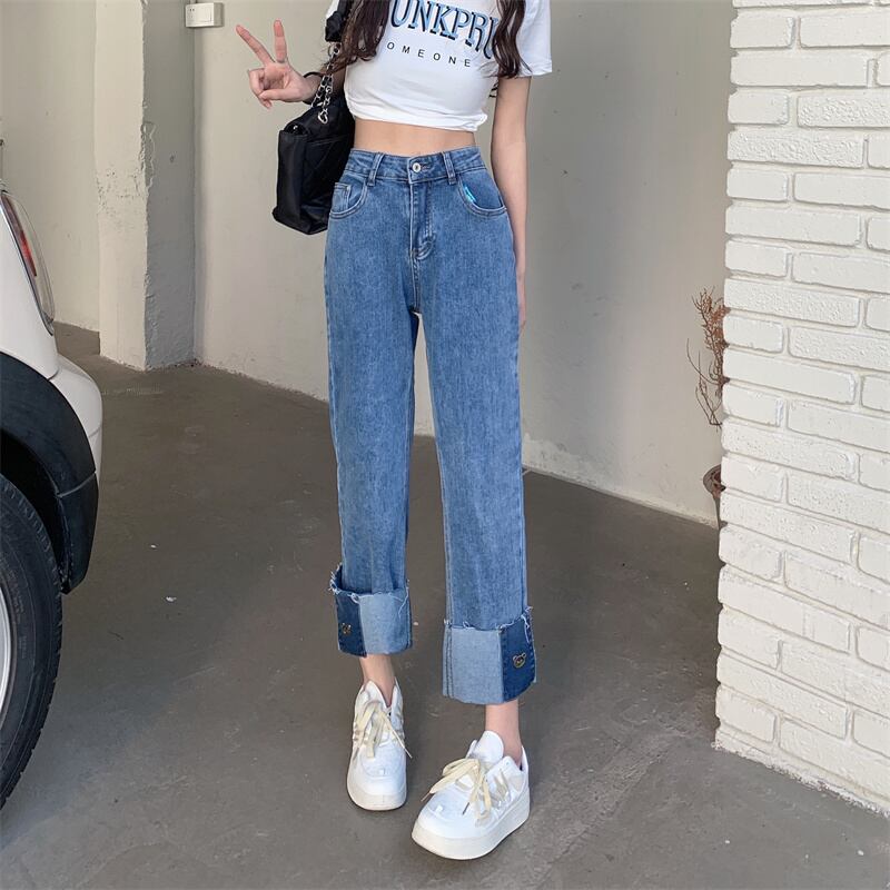 ジーンズ スプリングハイウェストウェスト薄手ルーズパンツ 春物 ウエスト SYJ2118373738