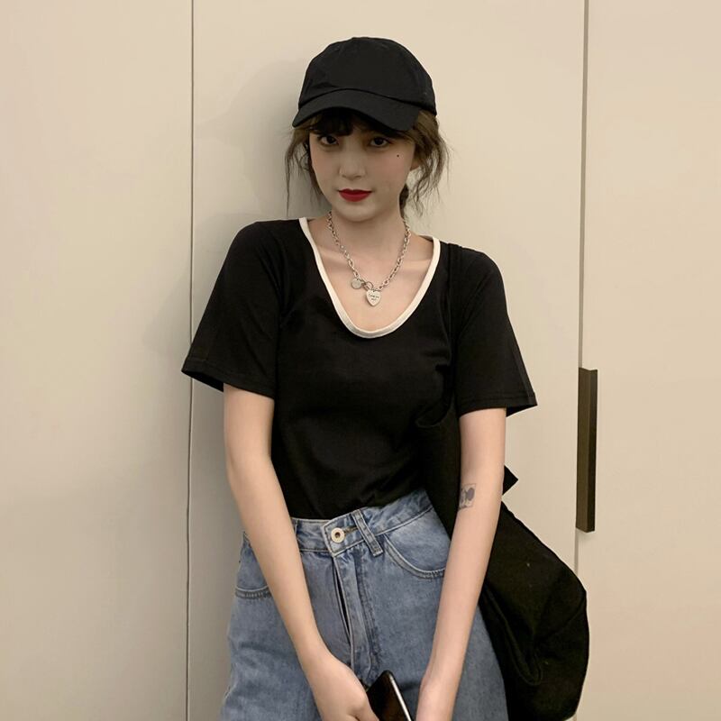 ブラックTシャツ夏服NEW レッド コットン 夏物 SYJ46437005817