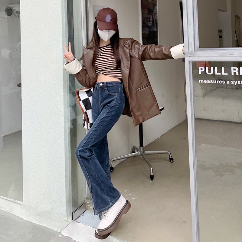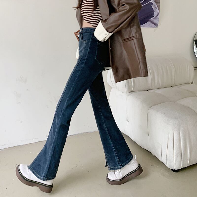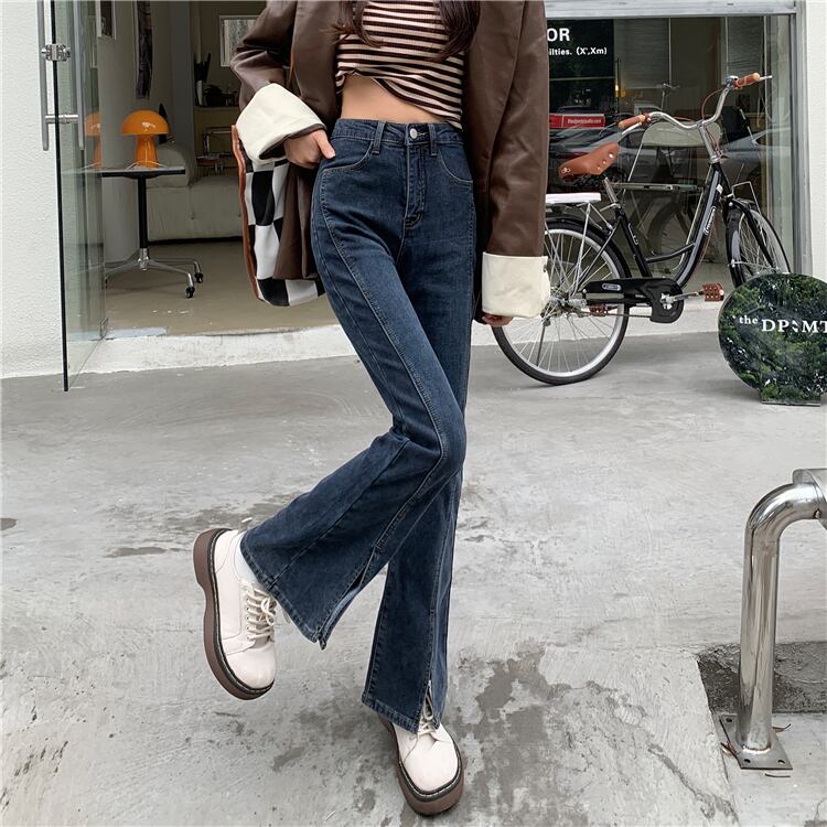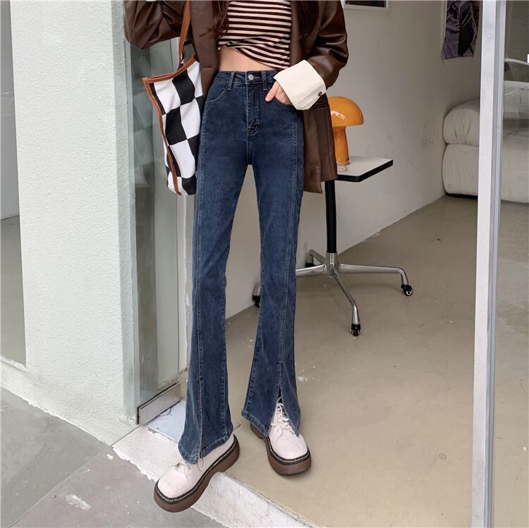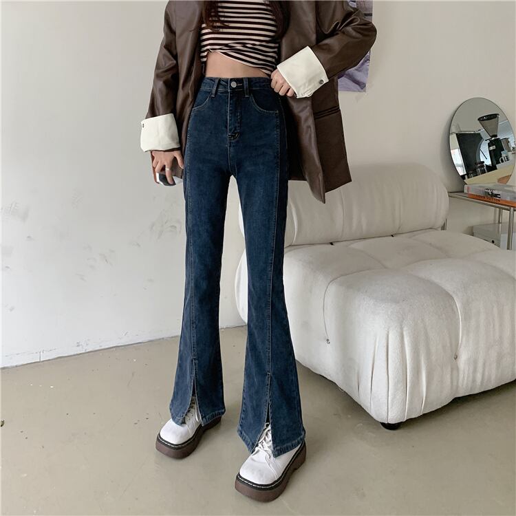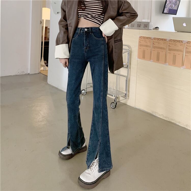 ブルースリットジーンズ スプリング秋物ハイウェストパンツ 春物 オータム ウエスト SYJ15387237514