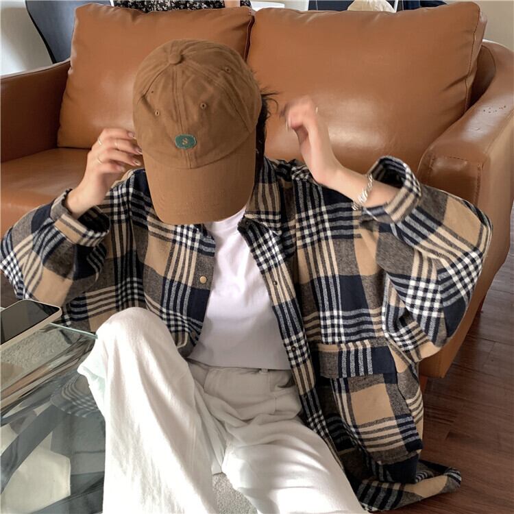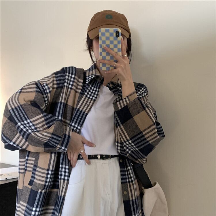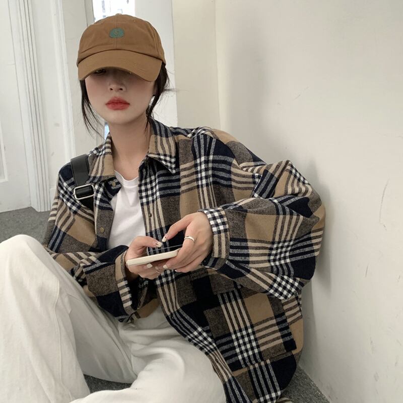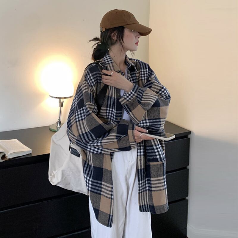 格子柄シャツ ジャケット スプリングルーズトップス ロング 春物 長袖 SYJ56807068825