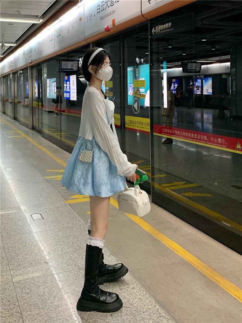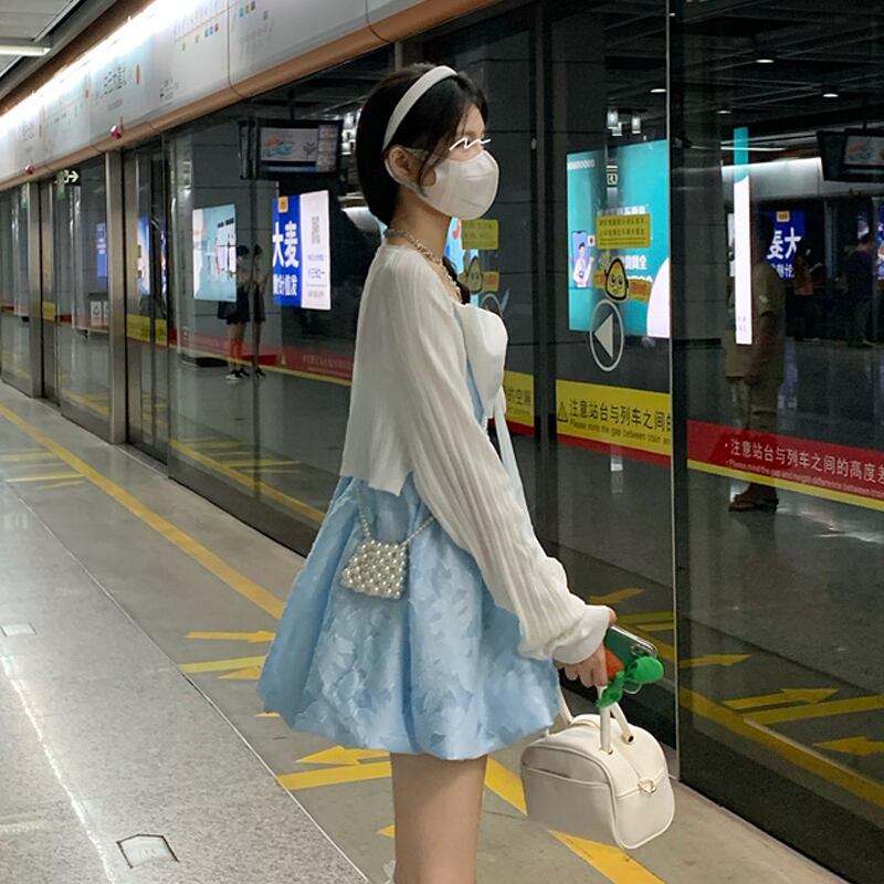 色:ホワイトカーディガンワンピース,シングルドレス