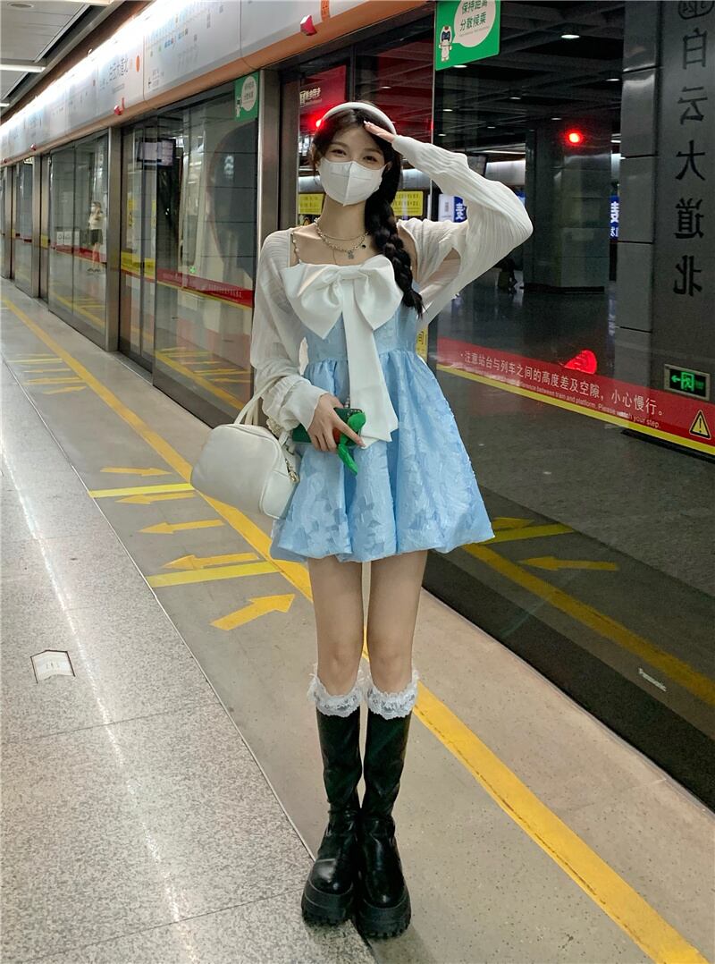 リボンワンピーススプリングスタイルショートスカート 春物 SYJ57513442047