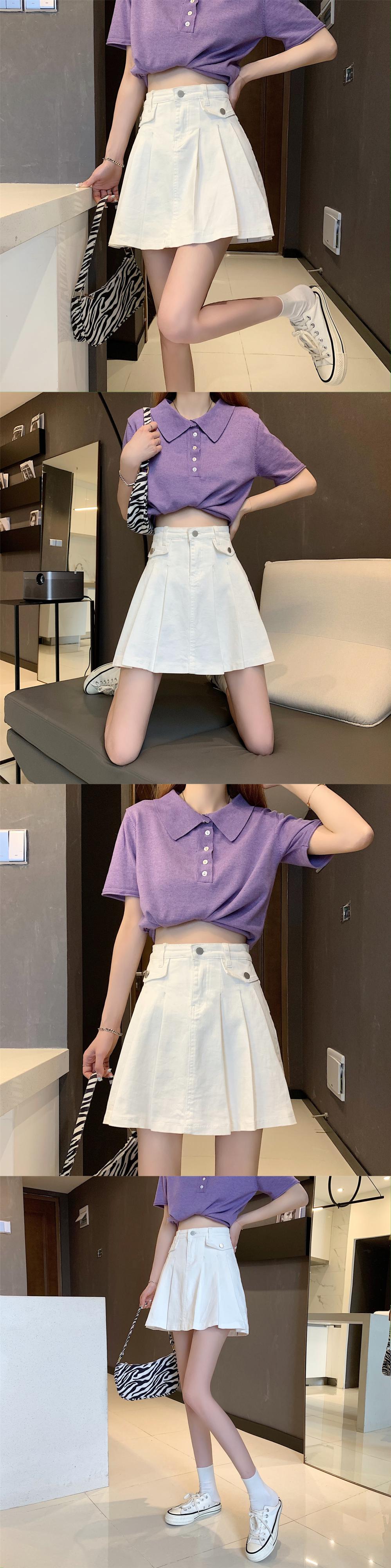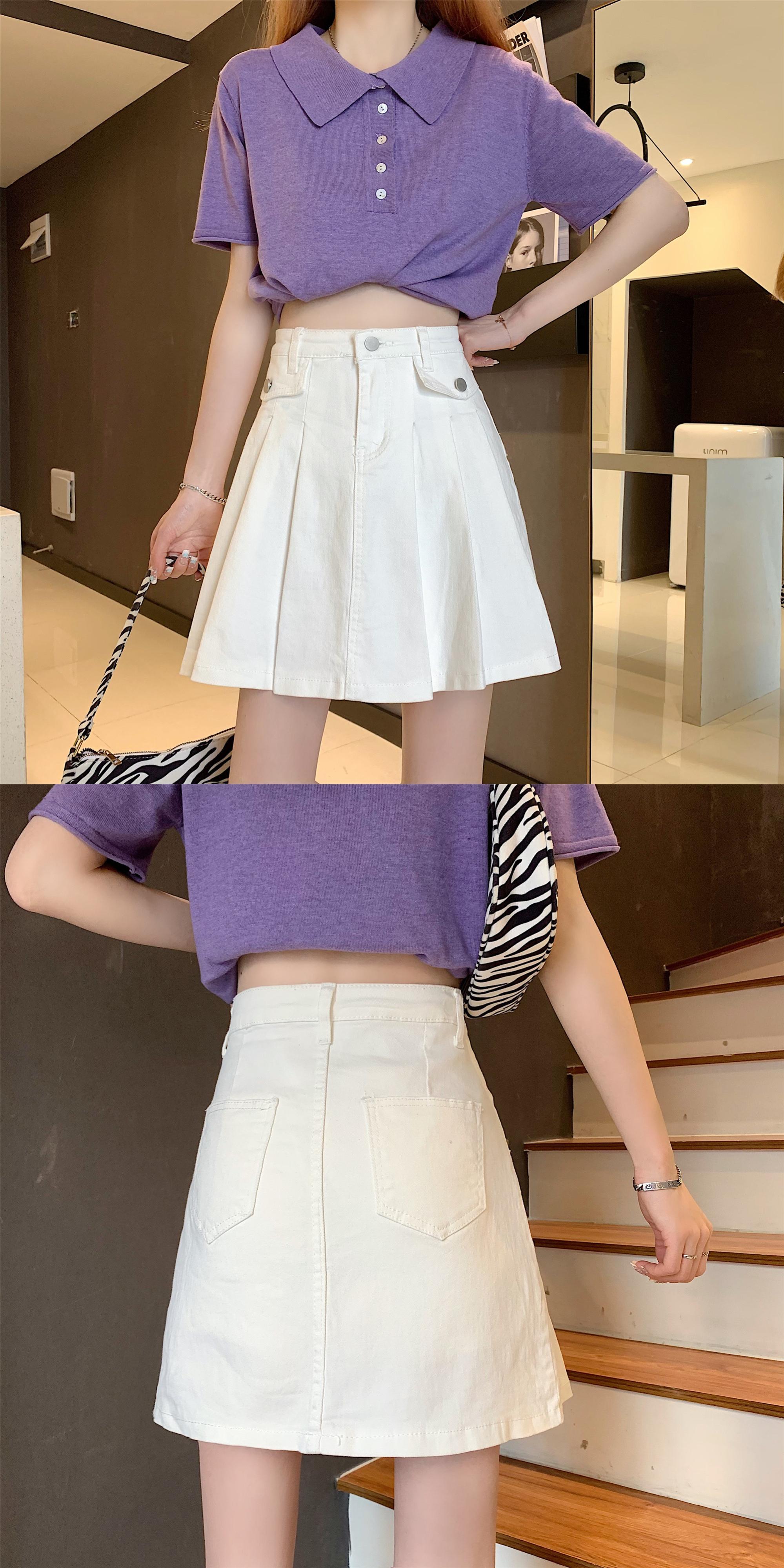 ホワイトスカート 夏服ハイウェストウェストAラインプリーツショート 夏物 ウエスト SYJ63611985894