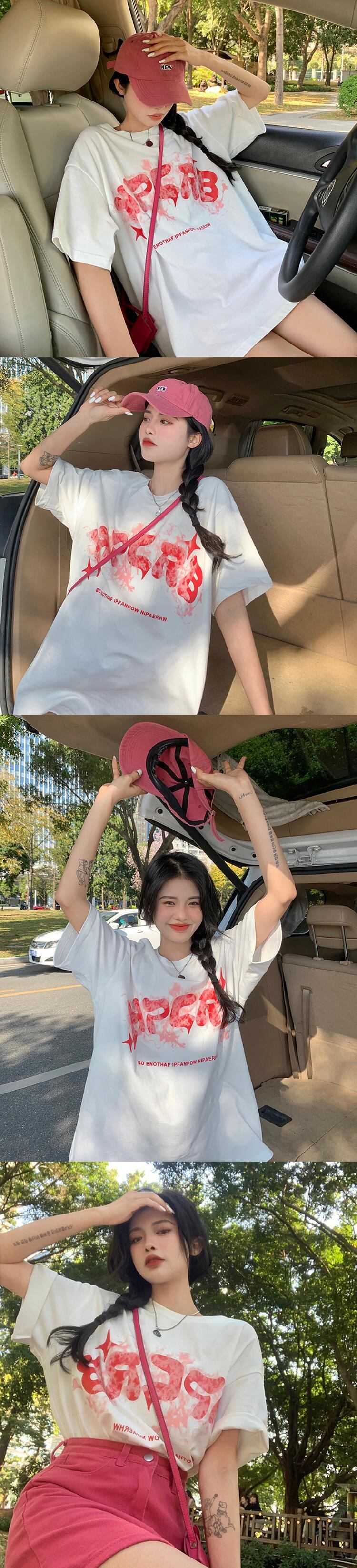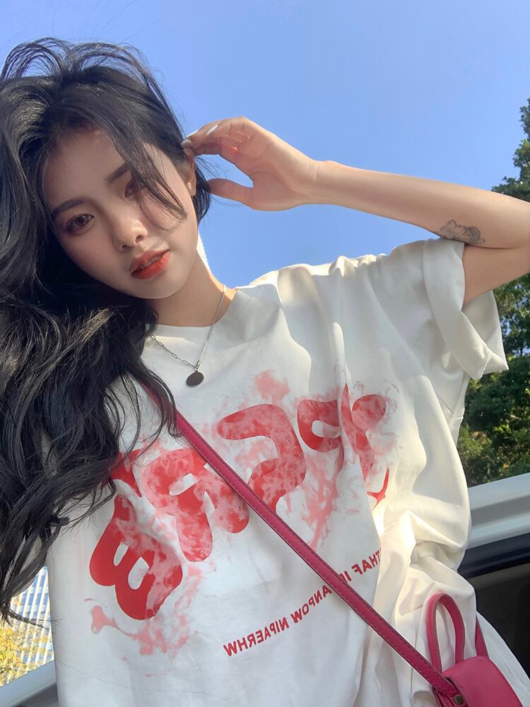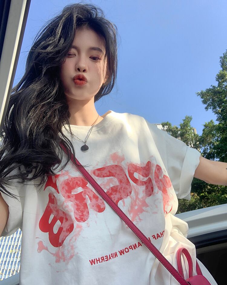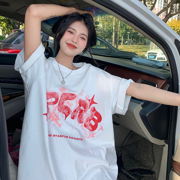 ホワイトTシャツ夏服ルーズトップス NEW コットン 夏物 SYJ60505495751