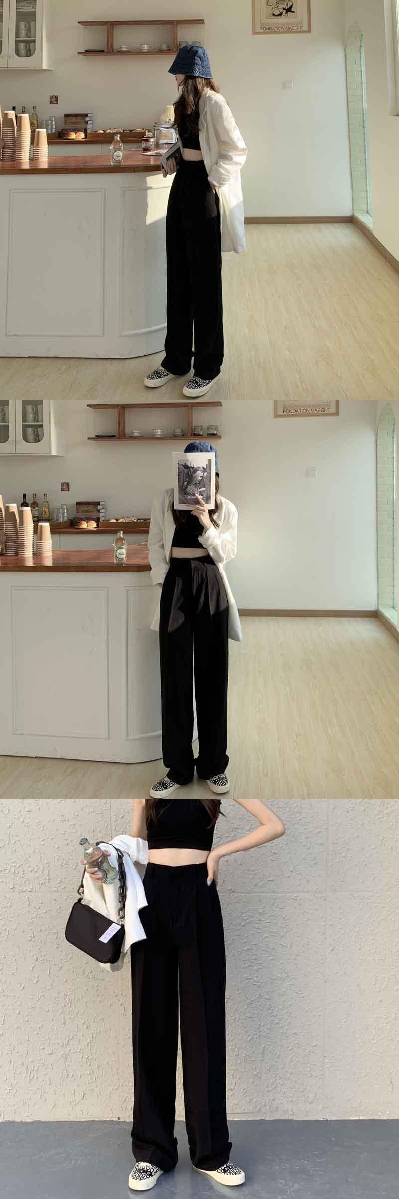 グレーパンツ 夏服ハイウェスト薄手ルーズカジュアル 夏物 ウエスト SYJ6894020668