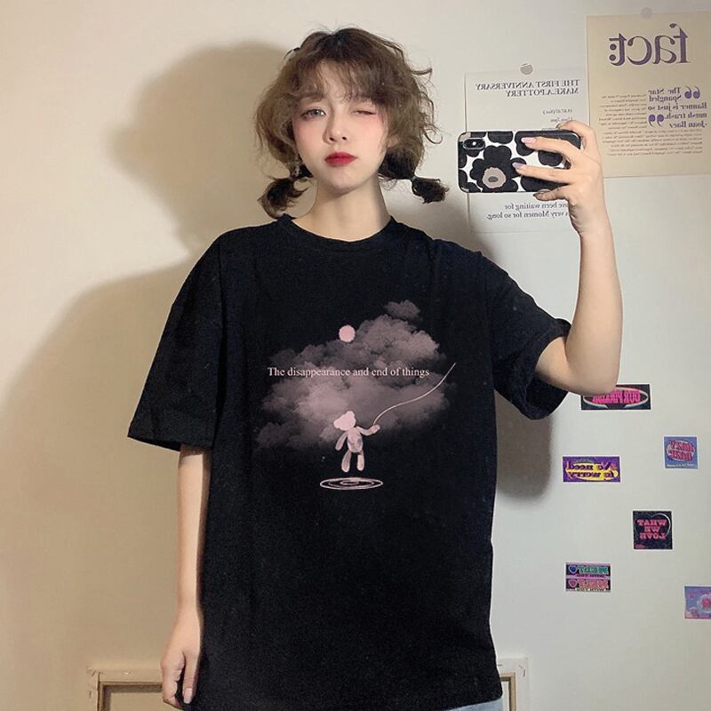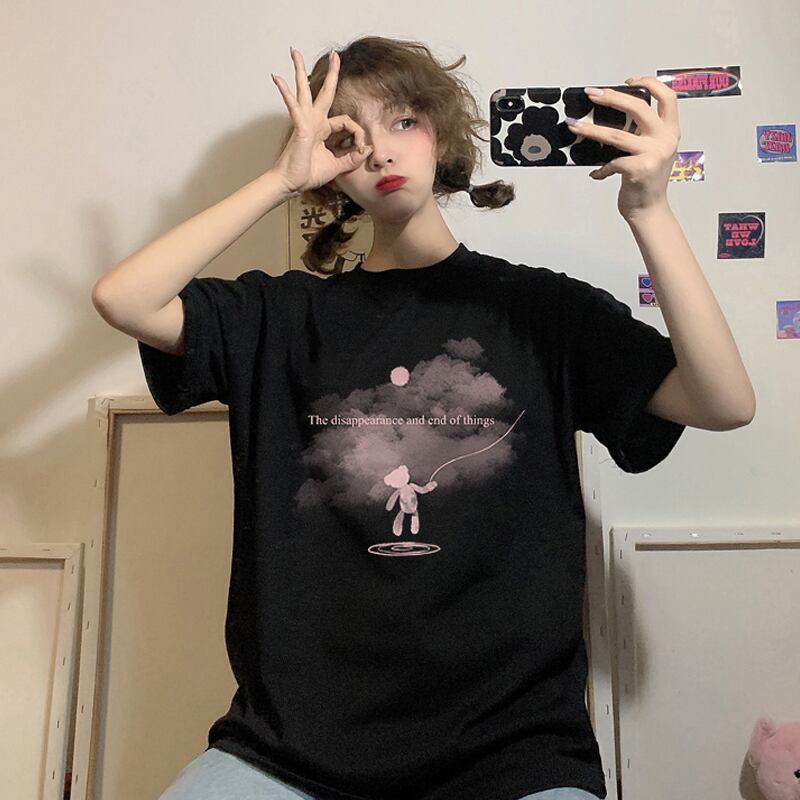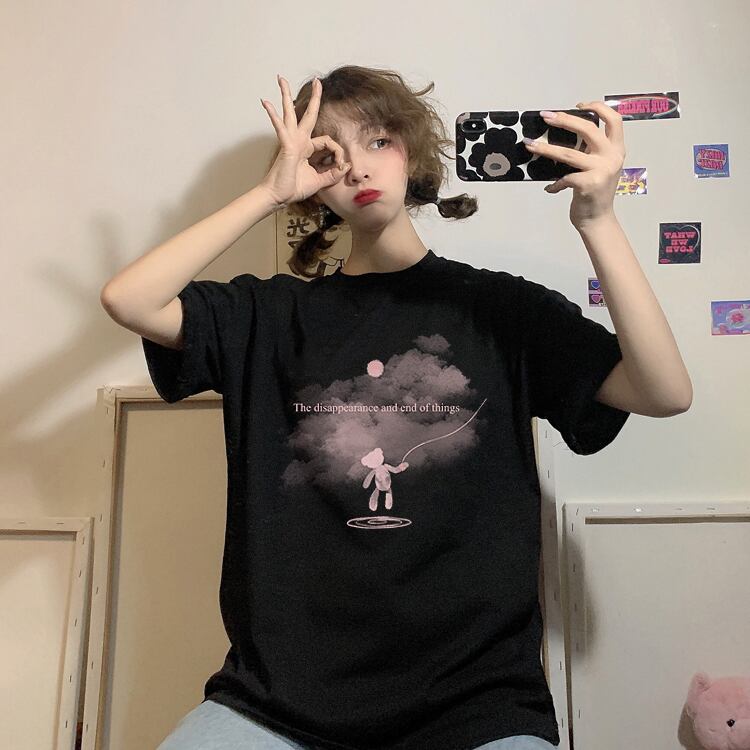 スタイルブラックTシャツ夏服ルーズ韓国ファッショントップス NEW 原宿 夏物 SYJ87186009950