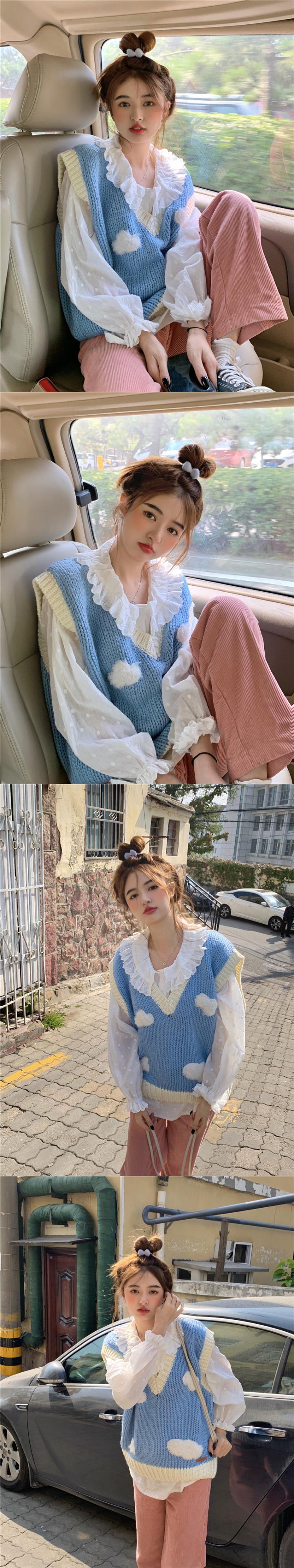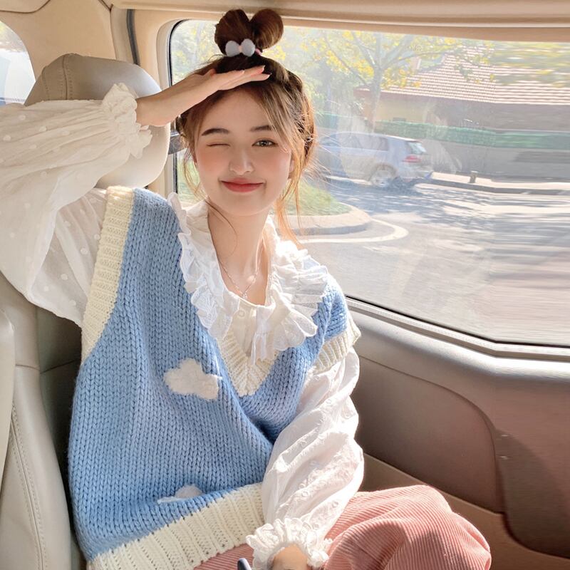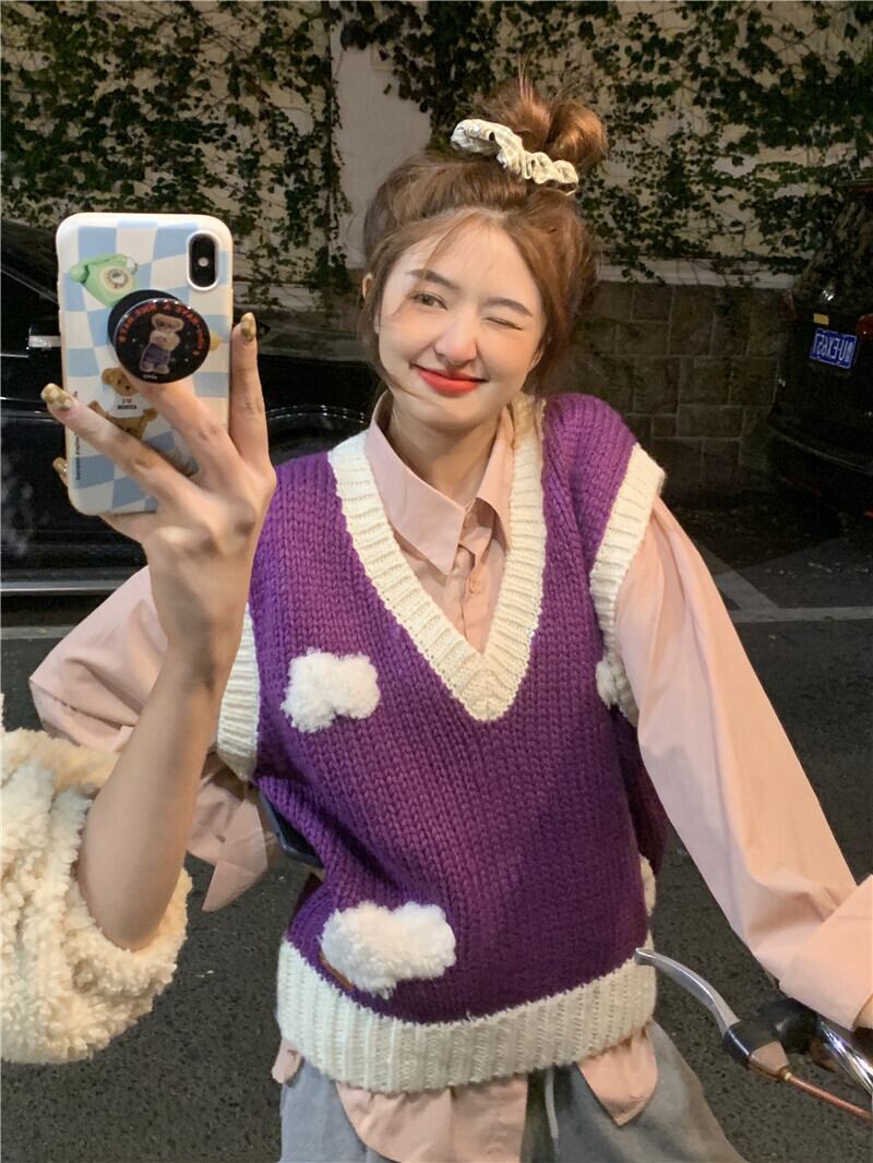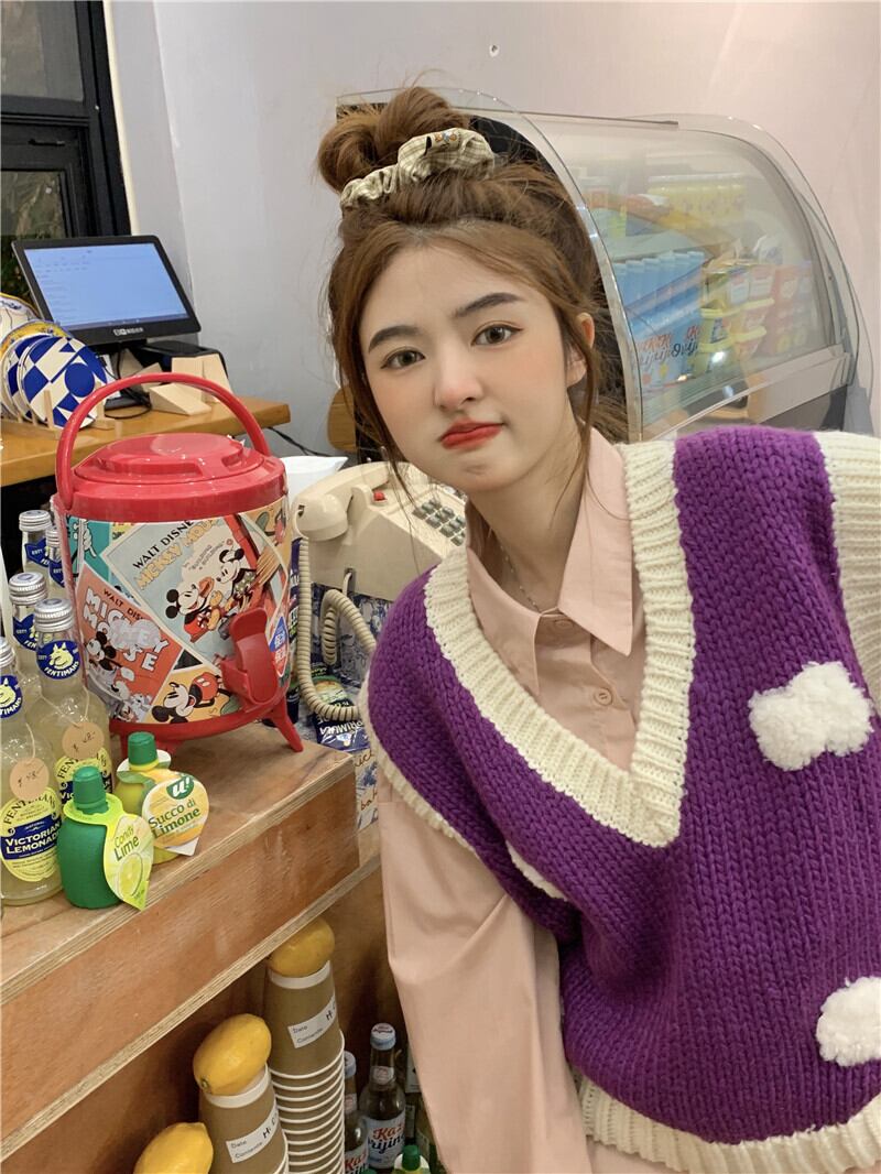 Vネックニットスプリング秋物セーター シャツ セット レッド 春物 オータム SYJ80891191281
