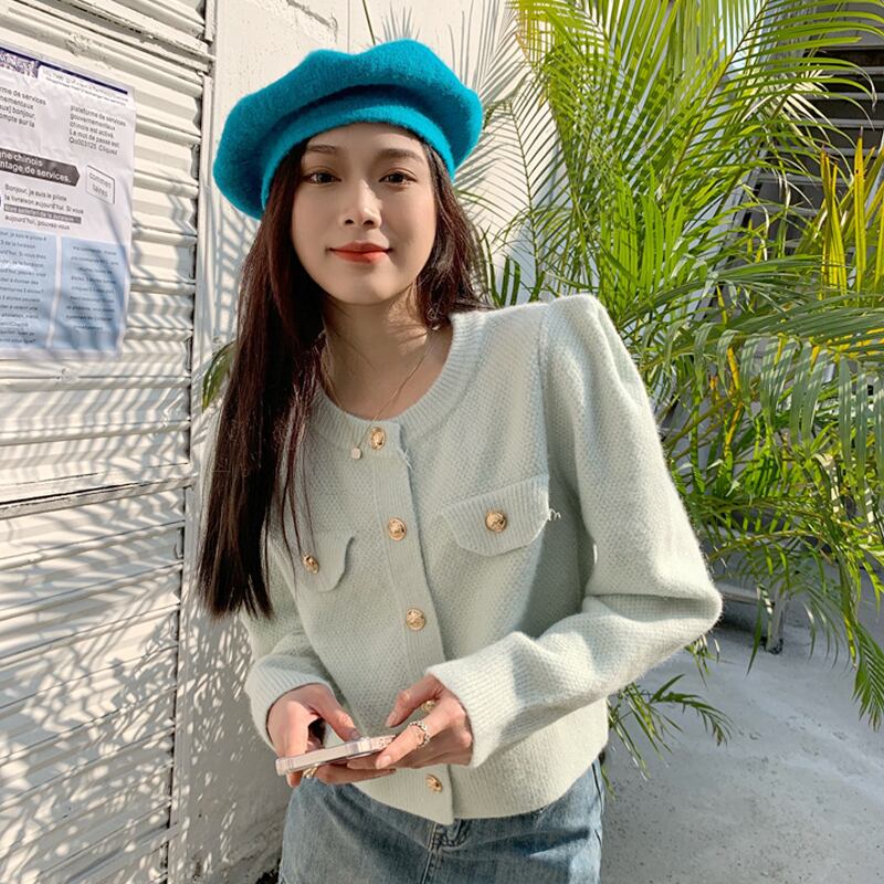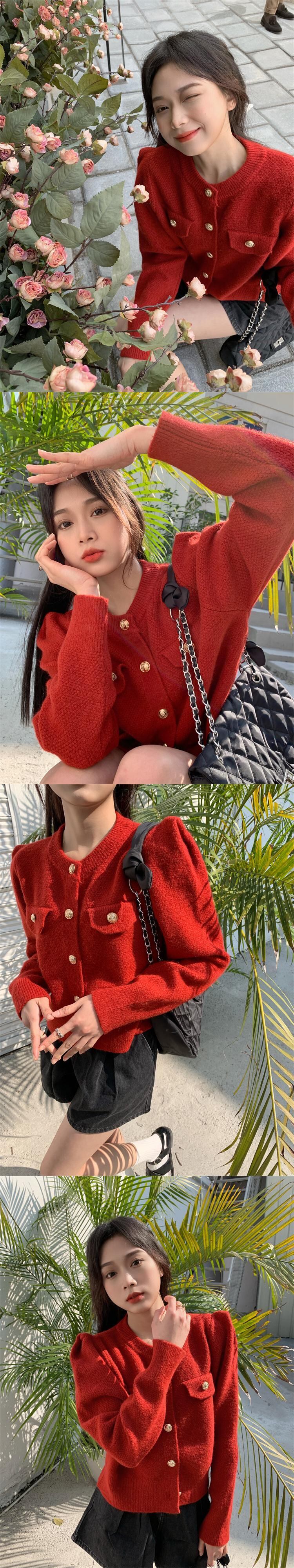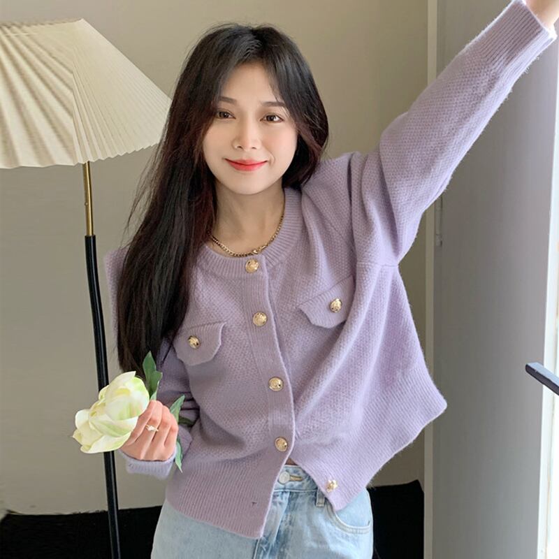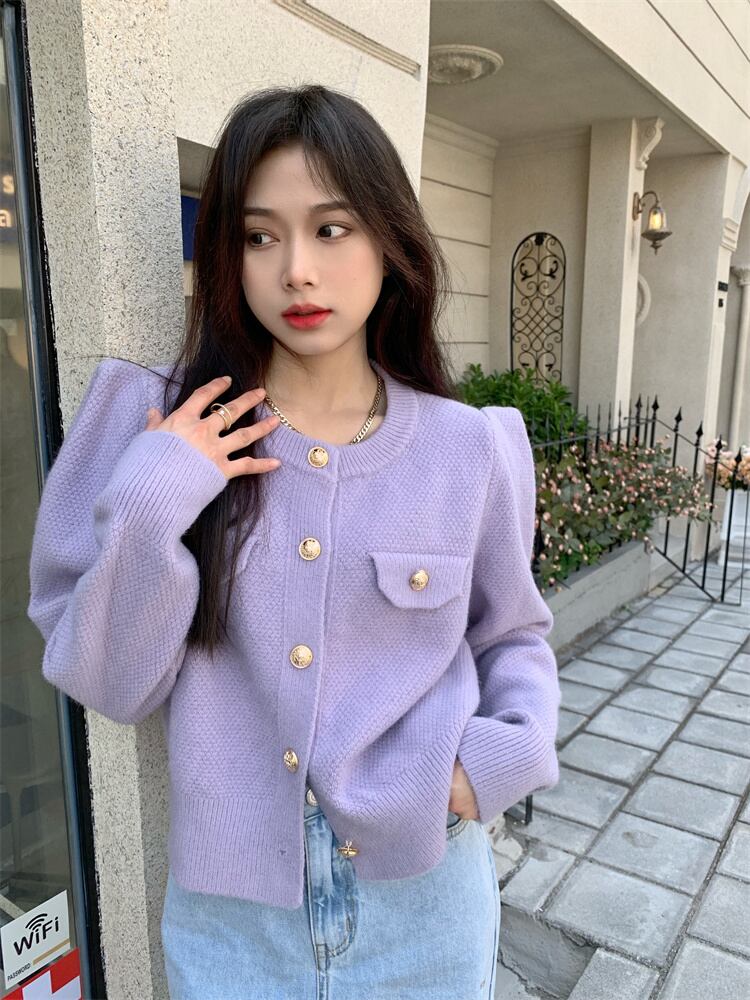 セーター ジャケット スプリング秋物韓国ファッションショートニットカーディガン 春物 オータム パープル SYJ67268686312