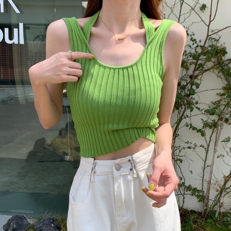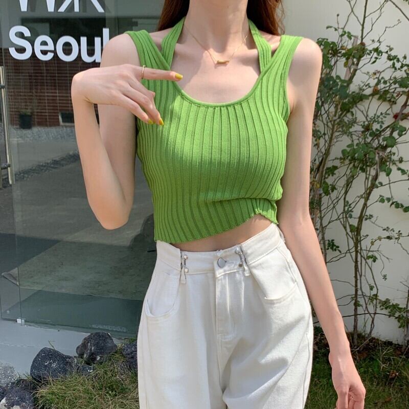 ホルター夏服バックトップス ノースリーブショート 夏物 SYJ34861066192
