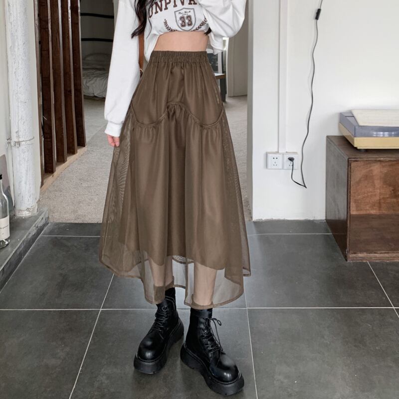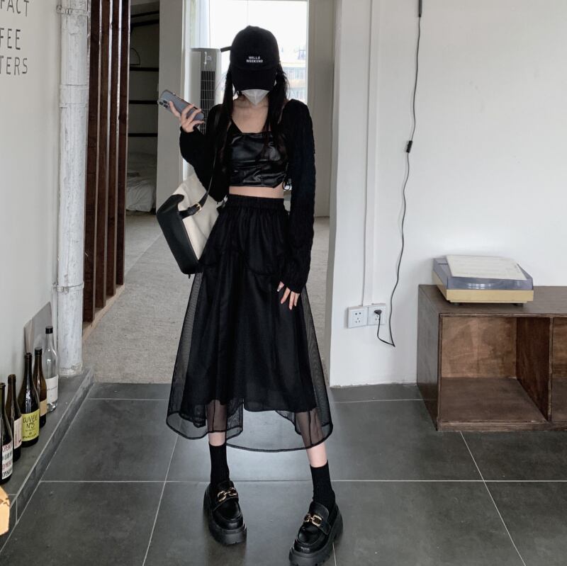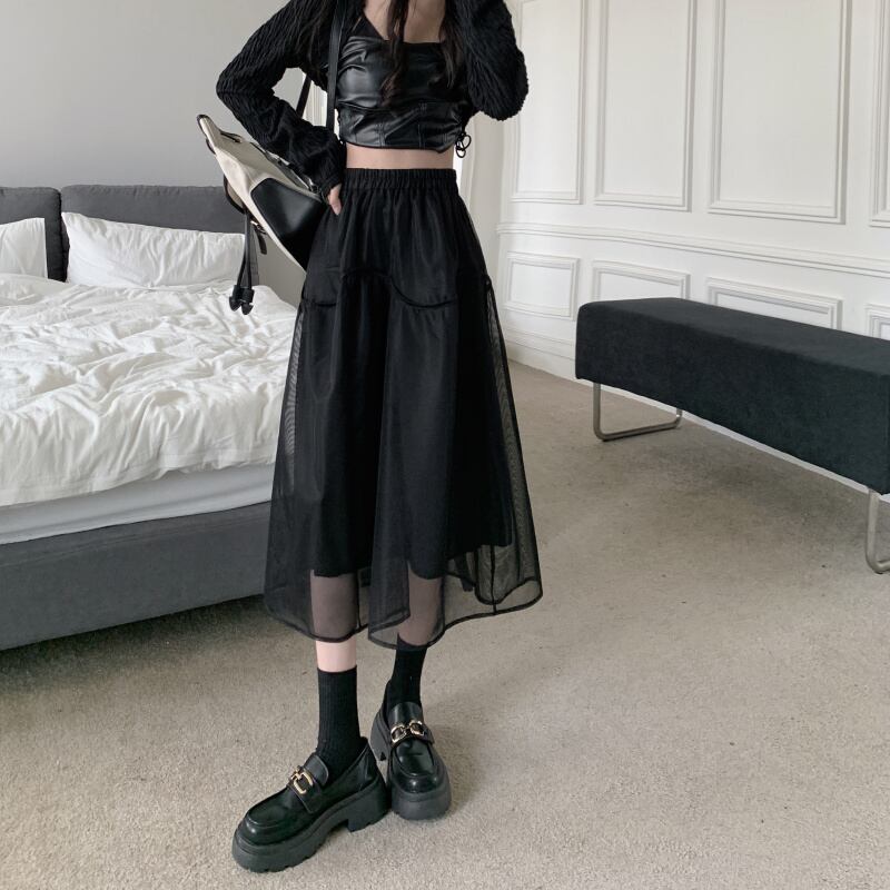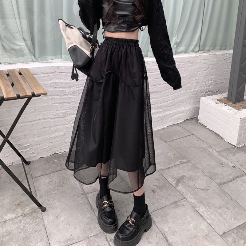 ブラックスカート スプリングハイウェストスリムAラインロング 春物 ウエスト ミドル丈 SYJ21394050081