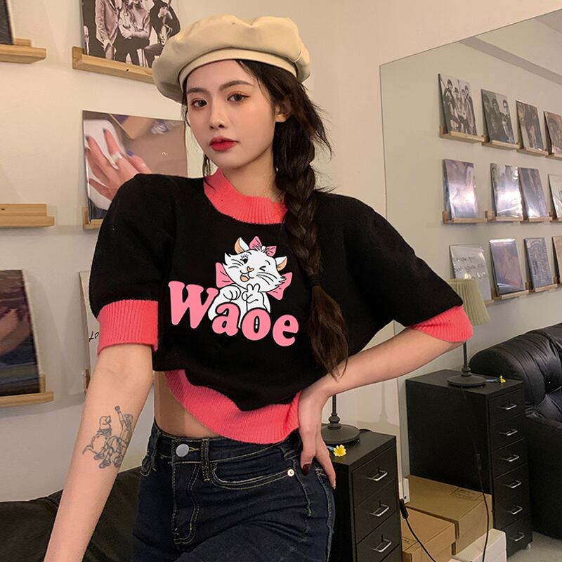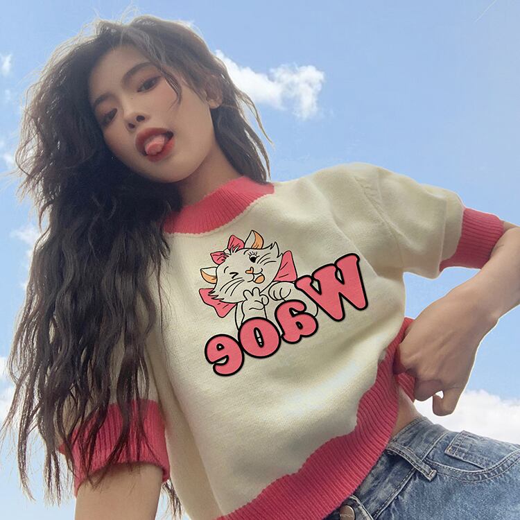 ニットショートTシャツ夏服トップス NEW 大人ガーリー スウィート キュート カジュアル 夏物 ピュア SYJ4664448737