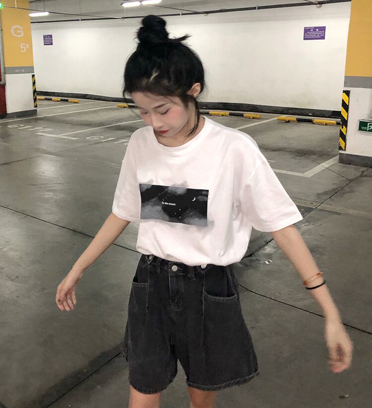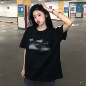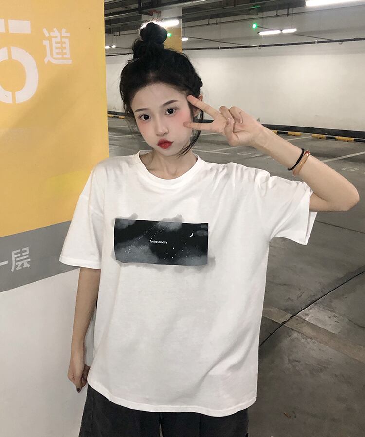 ブラックTシャツ夏服ルーズトップス NEW コットン 夏物 SYJ74084498732