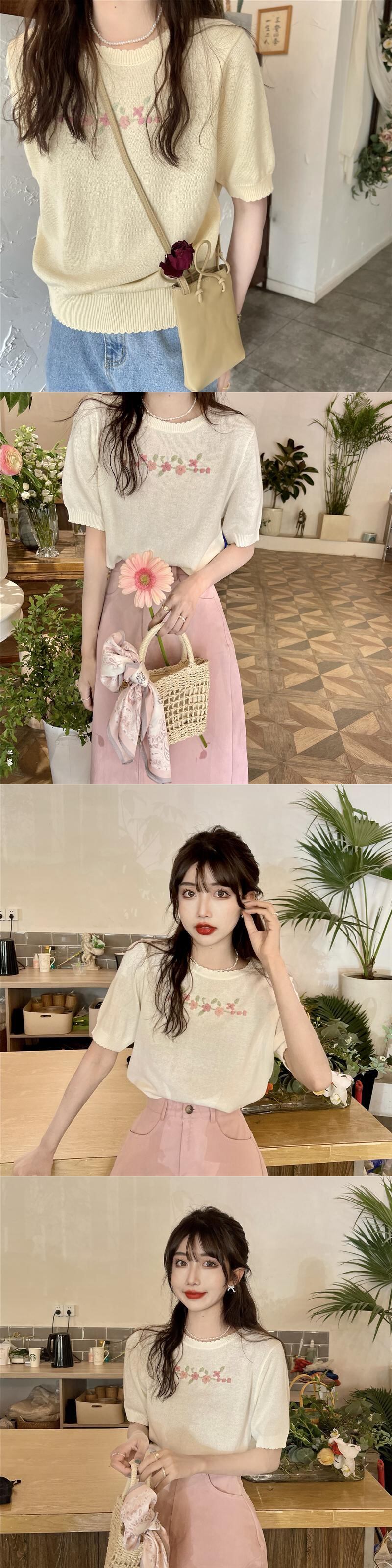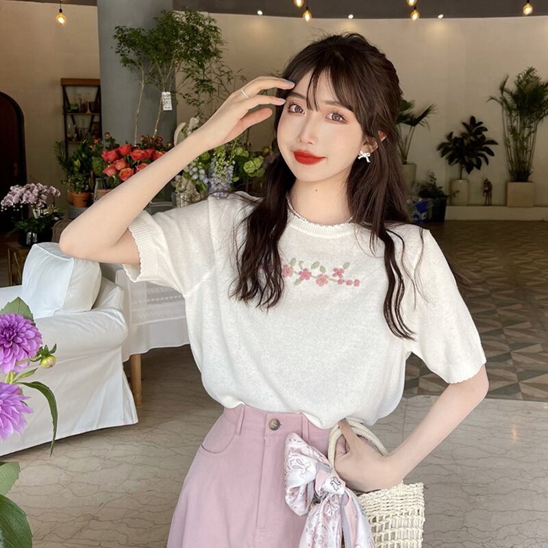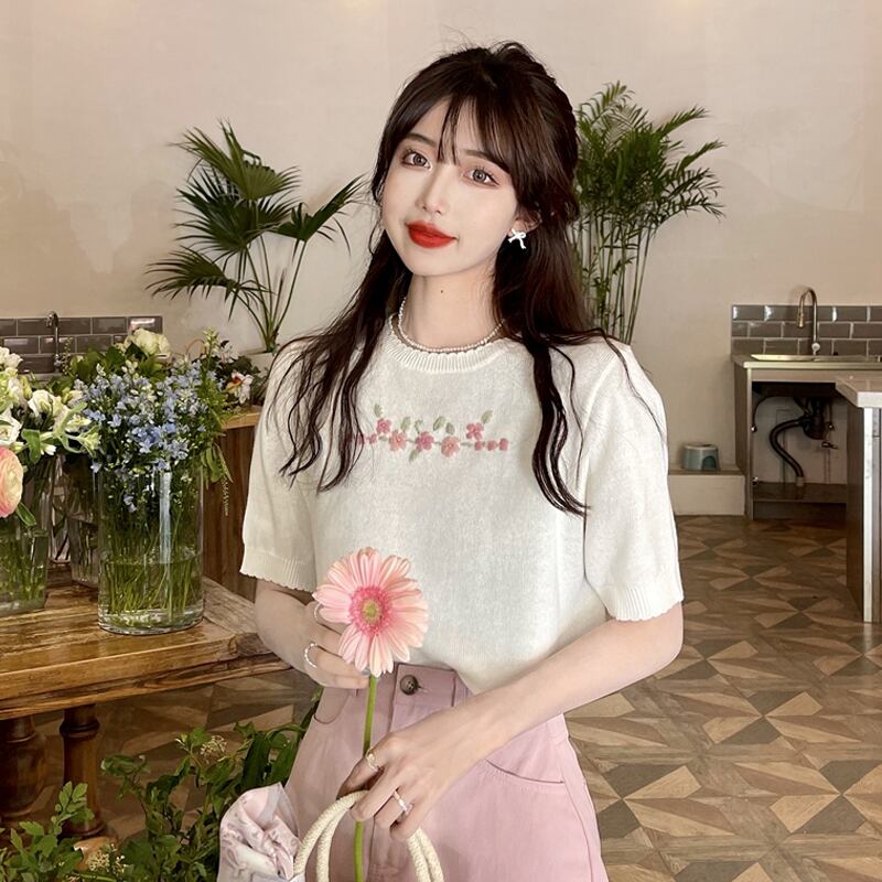 ニットセーター 夏服スタイルトップス 大人ガーリー スウィート キュート カジュアル 夏物 SYJ84959721032