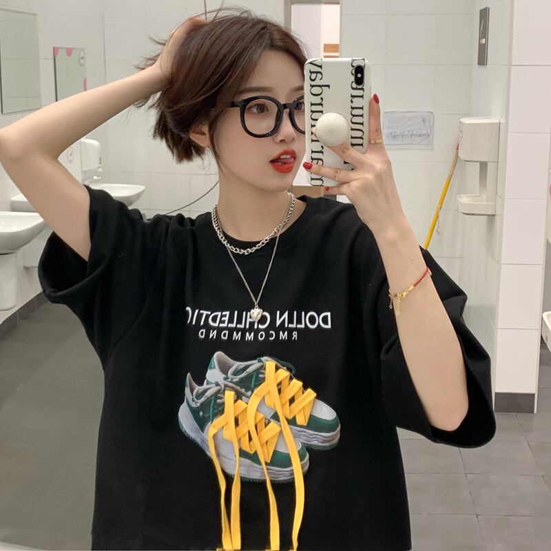 ブラックTシャツ夏服ルーズ韓国ファッショントップス NEW 夏物 スタイル SYJ93423231149