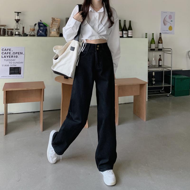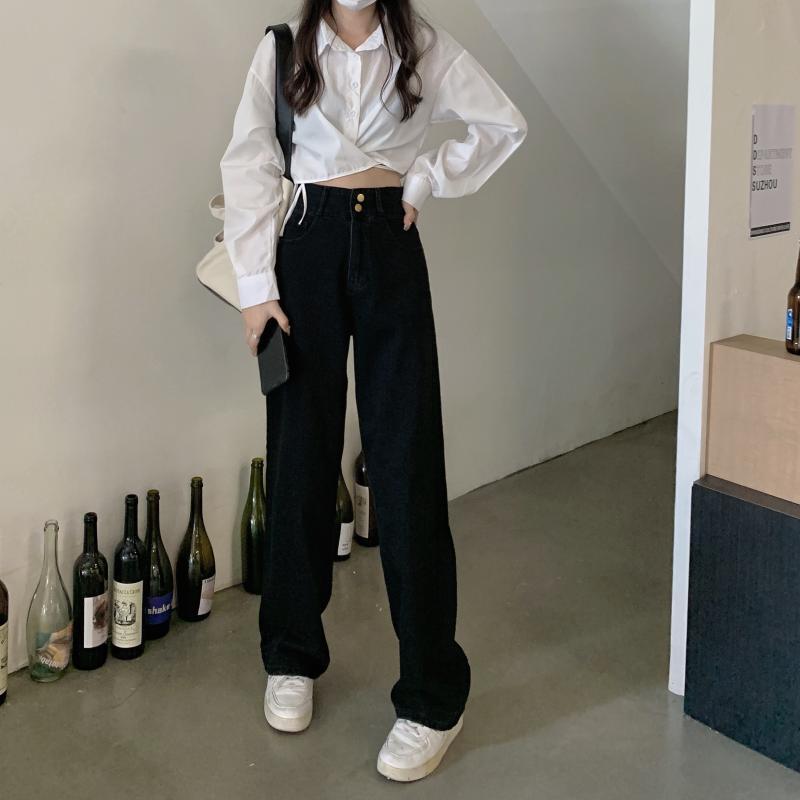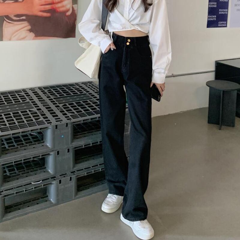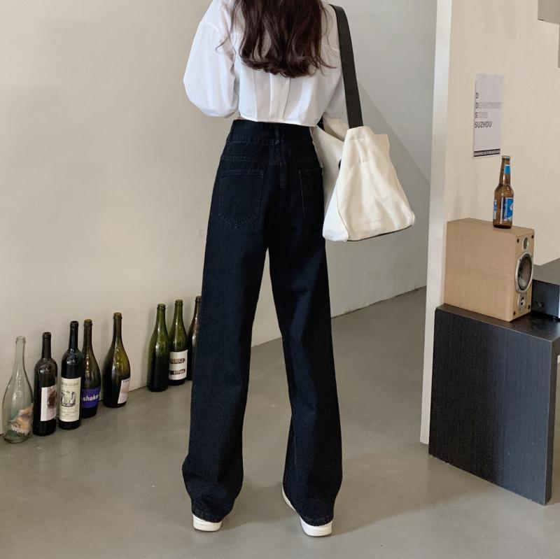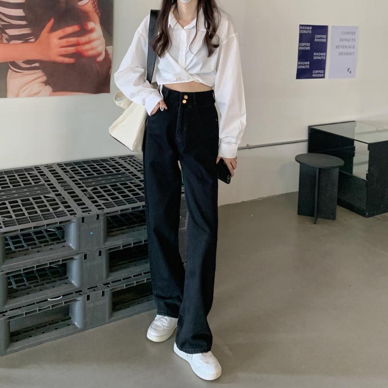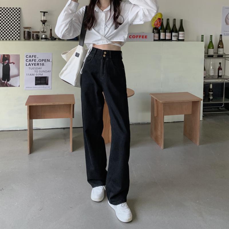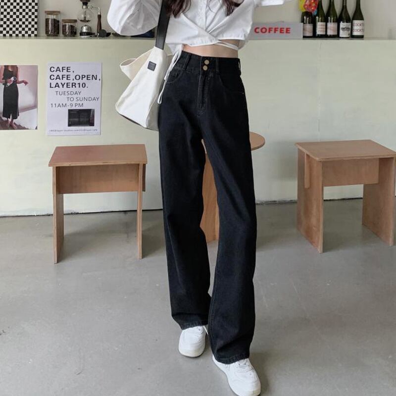 ブラックジーンズ スプリング秋物ハイウェストパンツ ルーズ 春物 オータム ウエスト SYJ88344927686