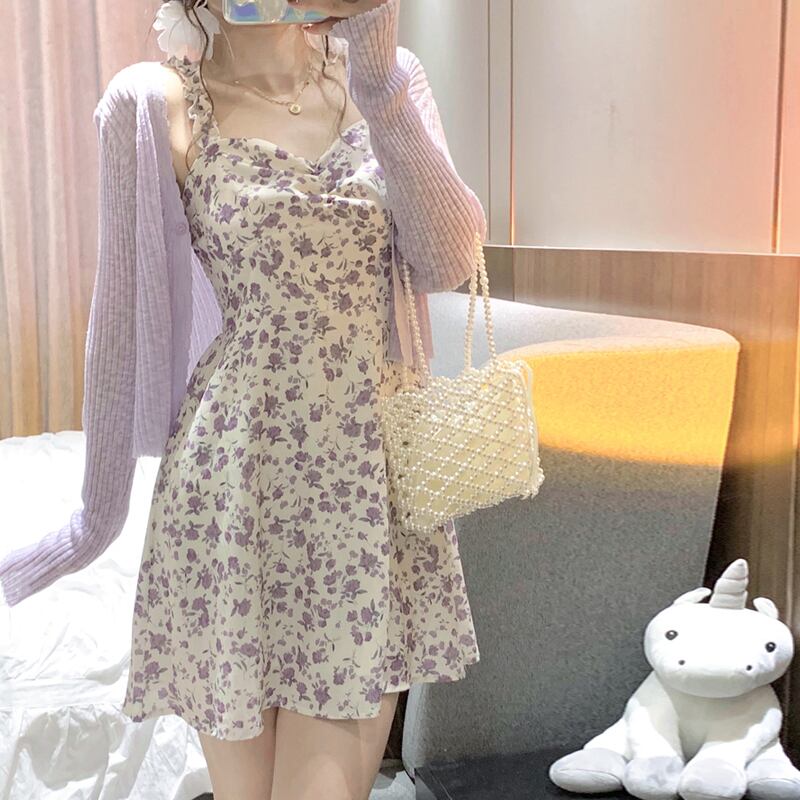 ニットカーディガンスプリング秋物ショートトップス 春物 オータム シルク パープル SYJ65223304112