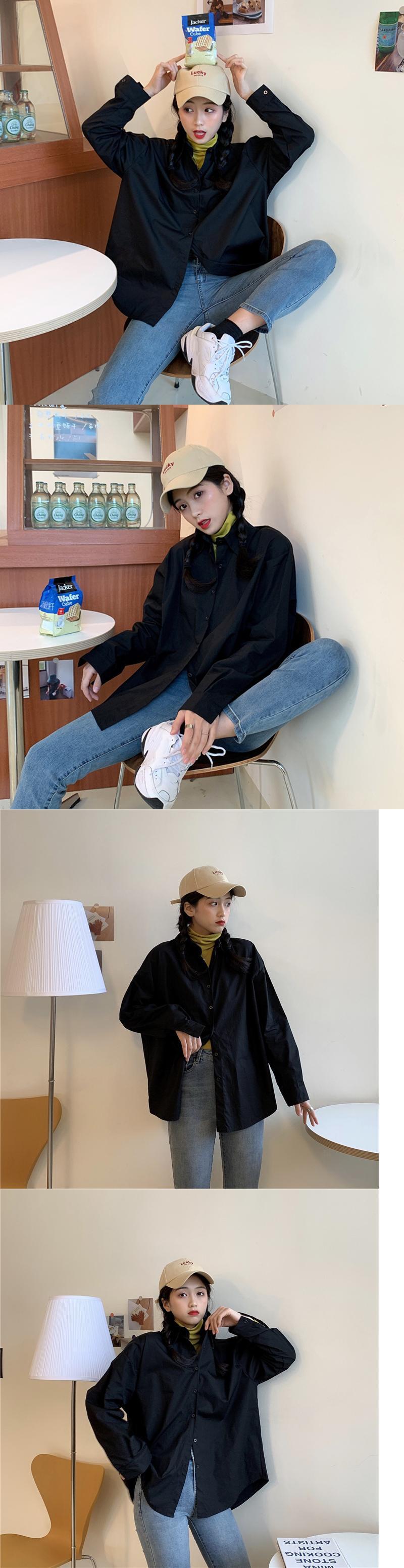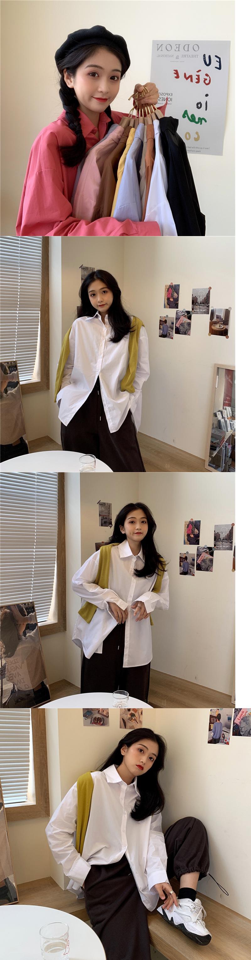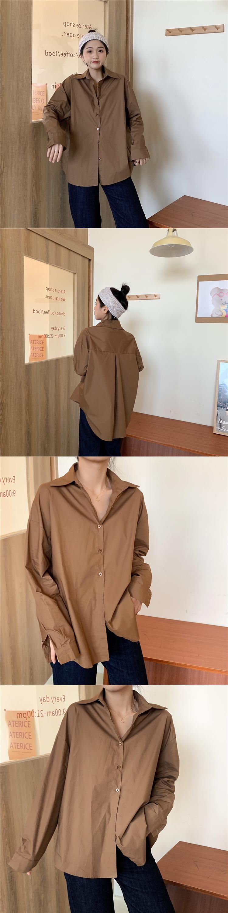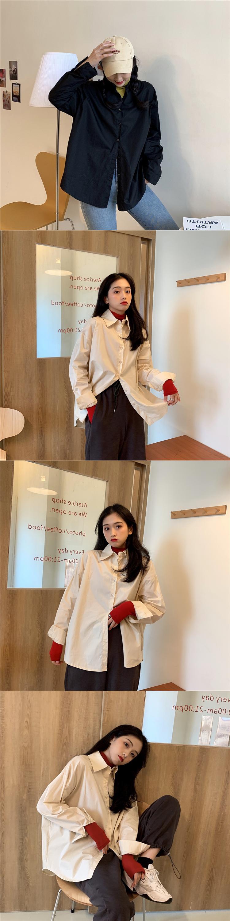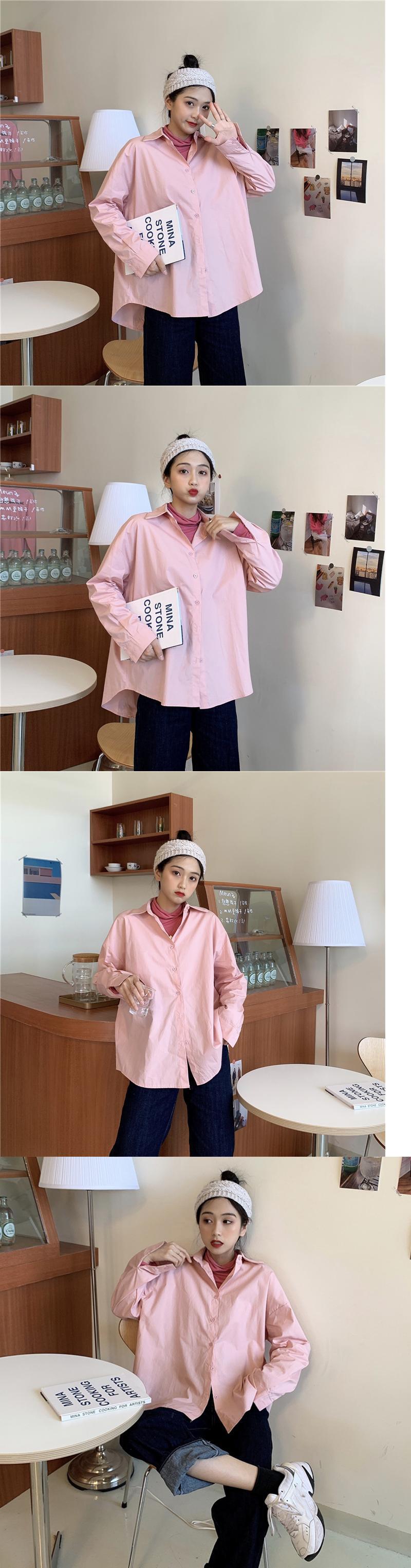 シャツスプリングルーズトップス ロング レッド 春物 長袖 SYJ41666997980