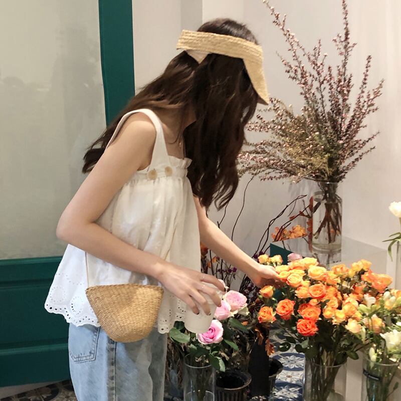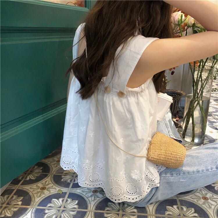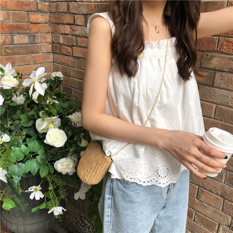 ホワイト夏服スタイルノースリーブトップス NEW 大人ガーリー スウィート キュート カジュアル 夏物 SYJ59943413537