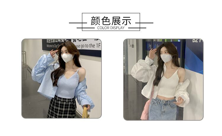 色:ホワイトスリングシングルピース,白いシャツのワンピース,ブルースリングシングルピース,青いシャツワンピース