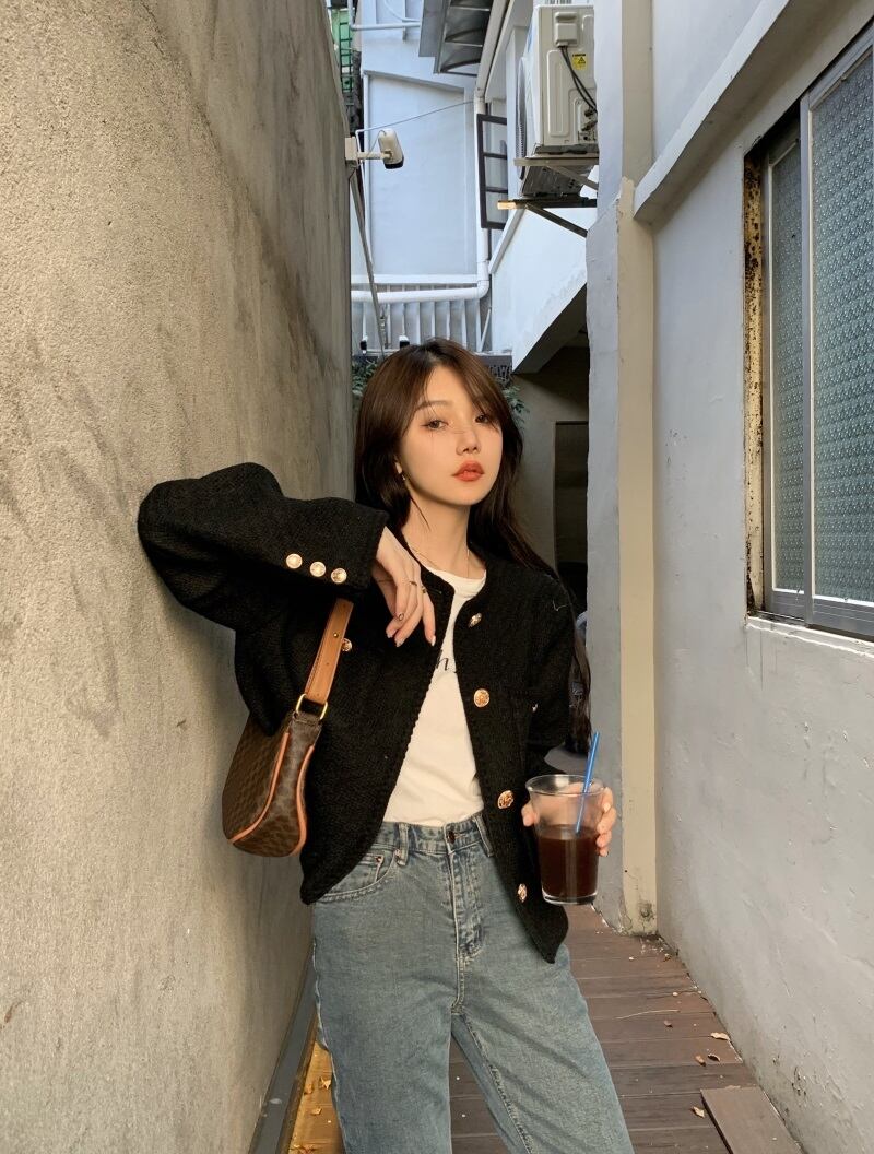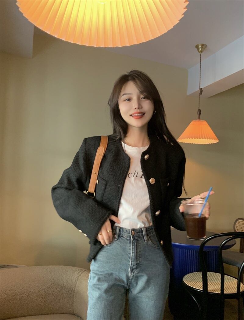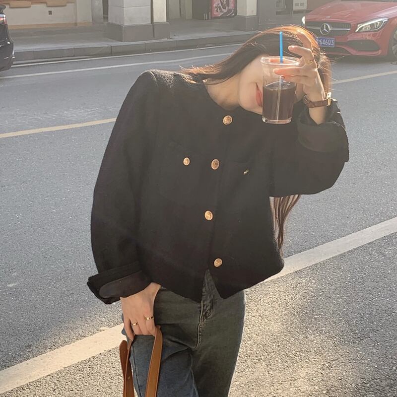 ブラックコート スプリング秋物ショート 春物 オータム SYJ77794043591