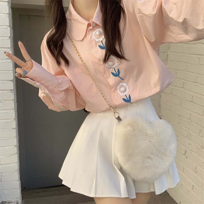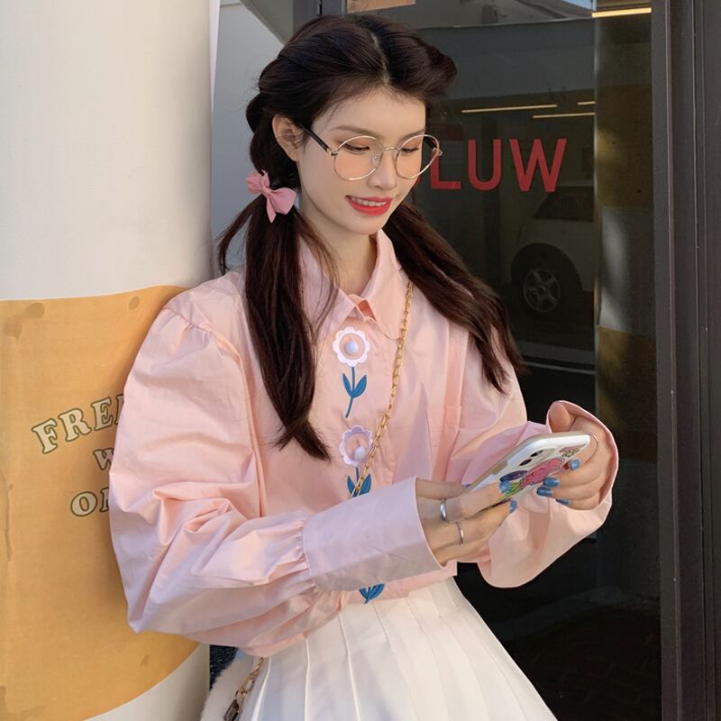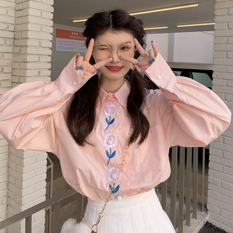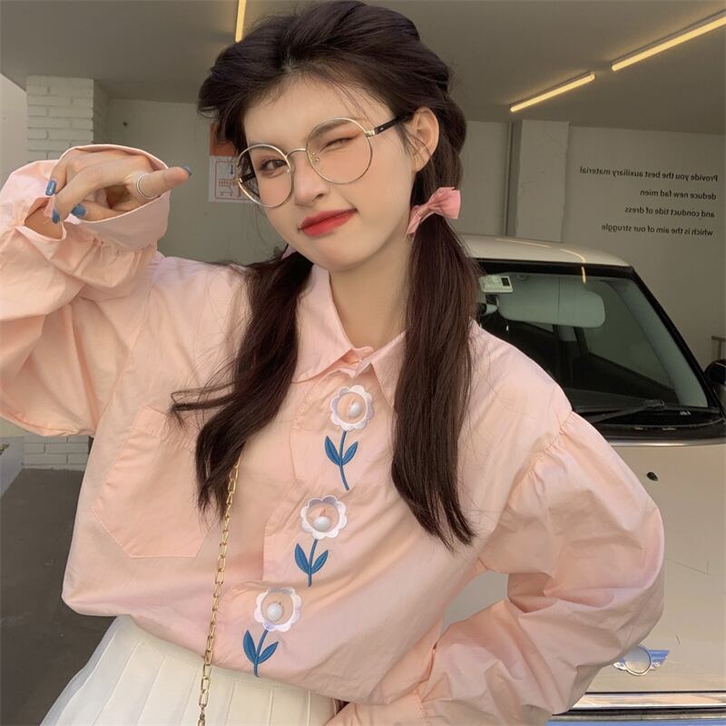 ブラウス スプリングシャツ トップス ロング ピンク 大人ガーリー スウィート キュート カジュアル 春物 長袖 SYJ82939334394