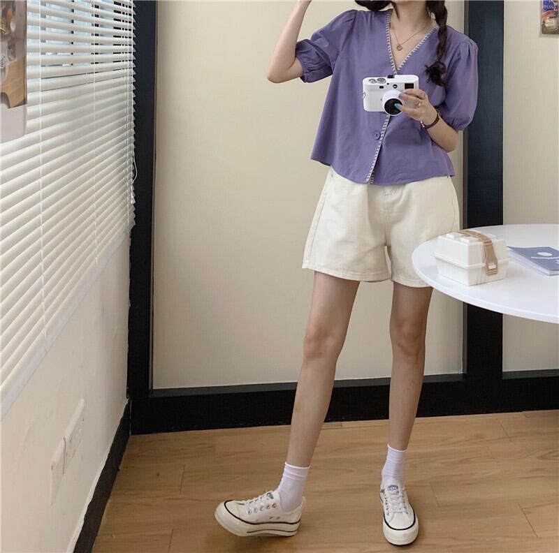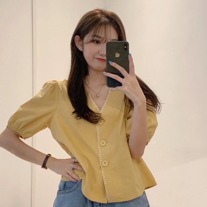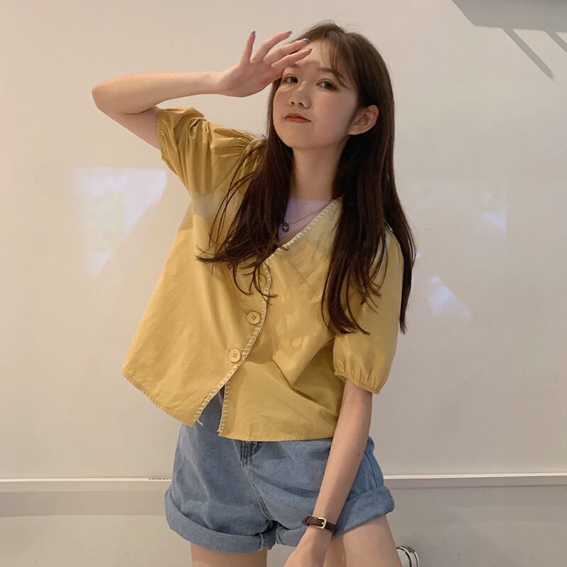 ショートトップス 夏服スリーブイエローシャツ 夏物 SYJ51761279967