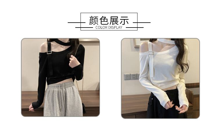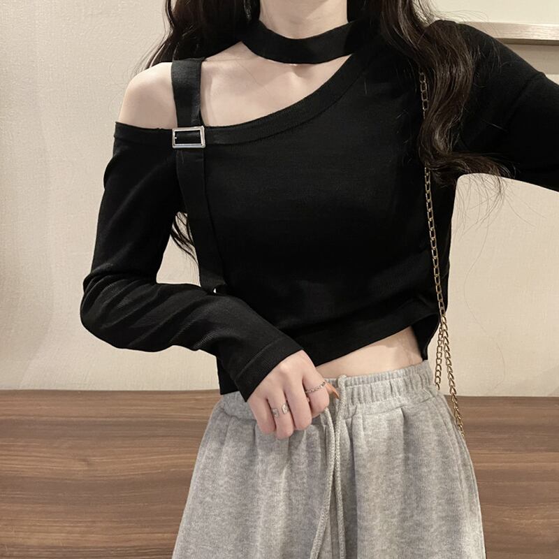 ブラック長袖スリーブTシャツスプリング秋物ショートトップス ロング 春物 オータム SYJ24176072348