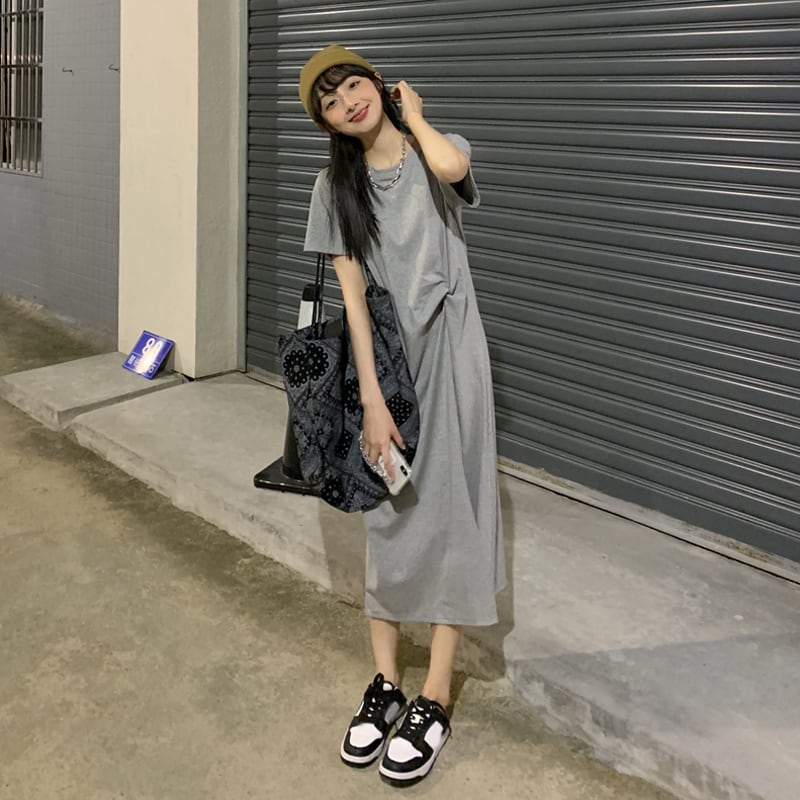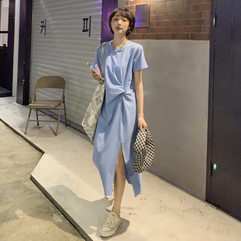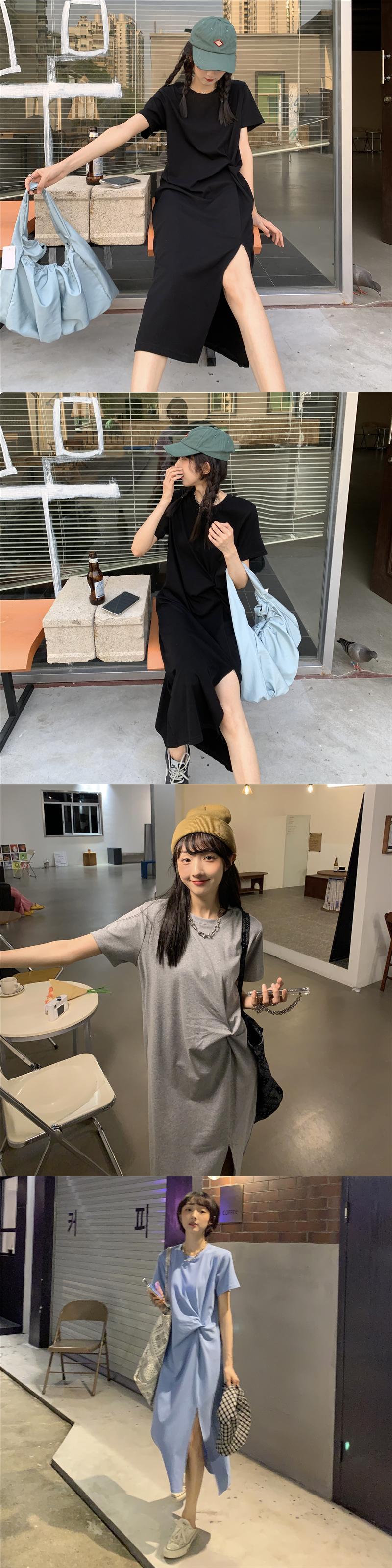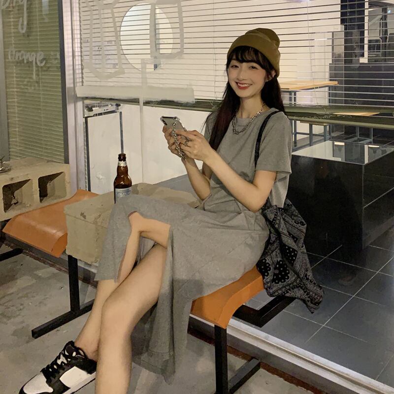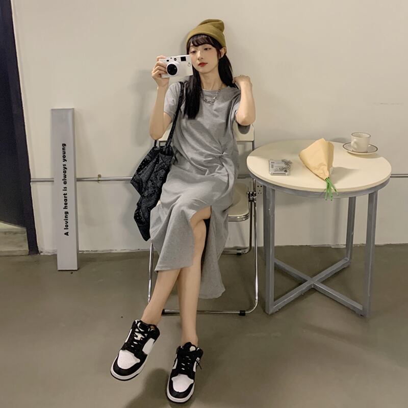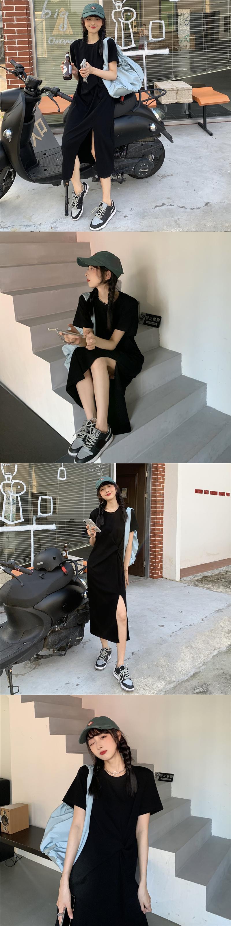 Tシャツワンピースゆったりスカート 夏服ブラックスリットロング 夏物 SYJ62911620933