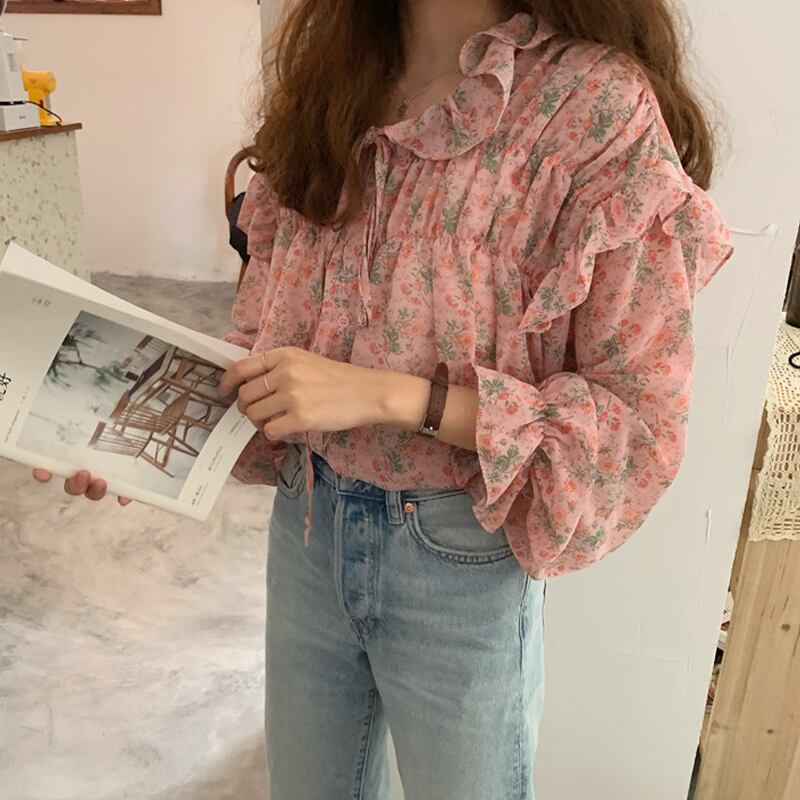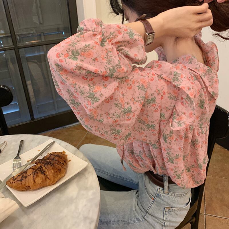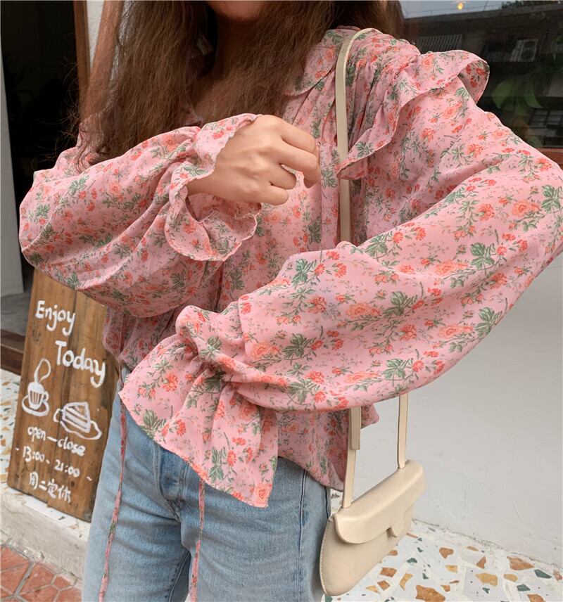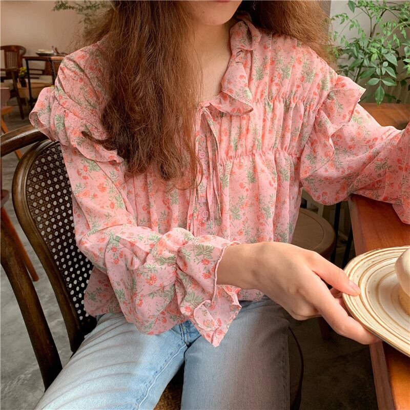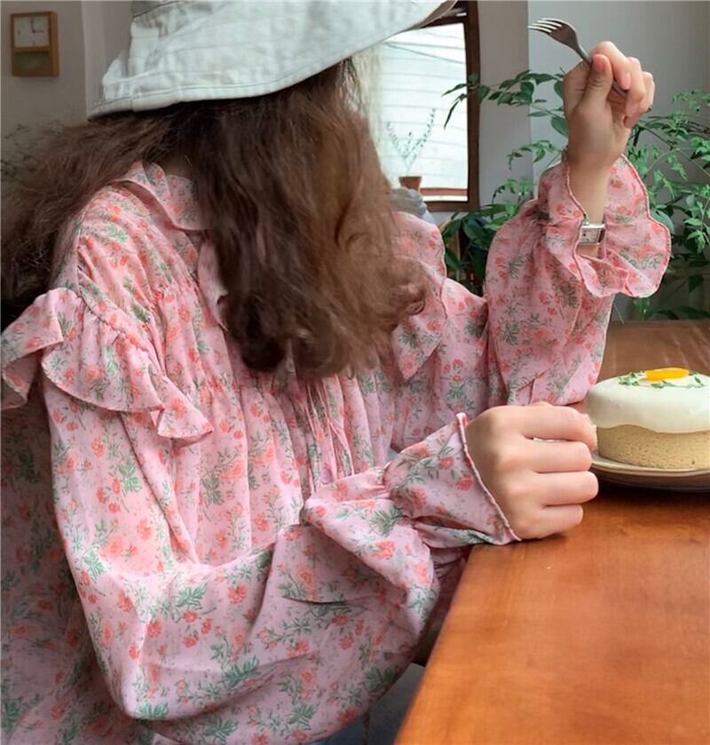 フローラルシフォンシャツ スプリング秋物韓国ファッショントップス 春物 オータム 花柄 SYJ23670092765