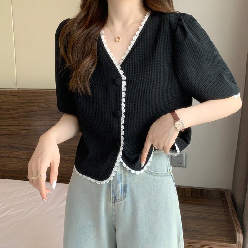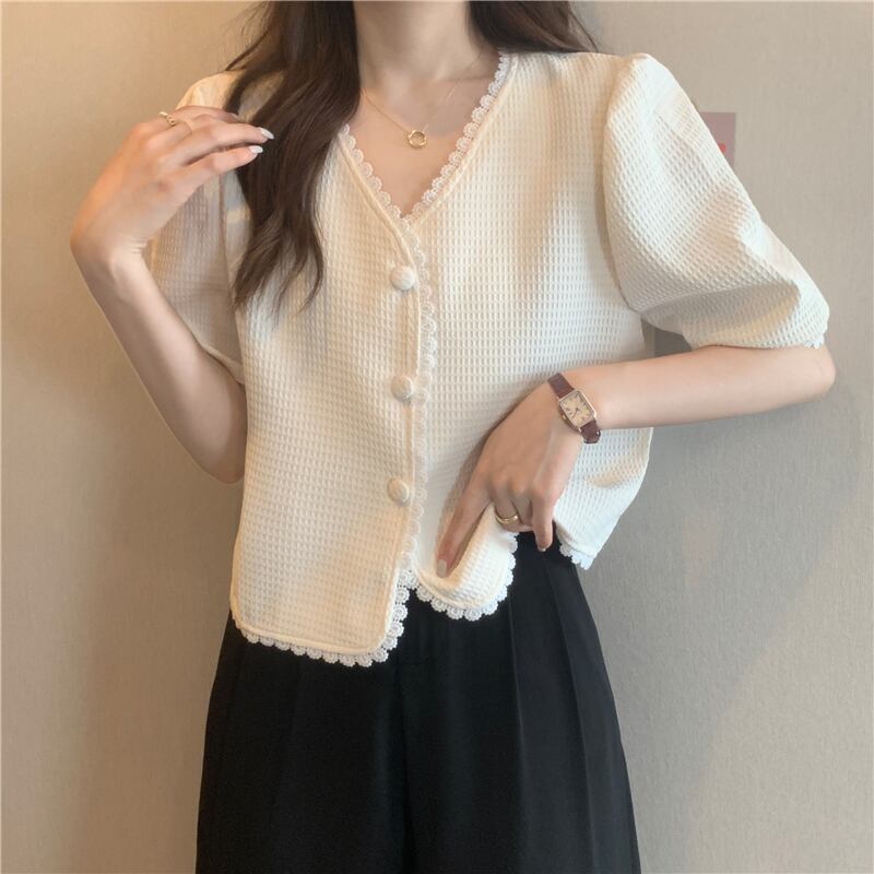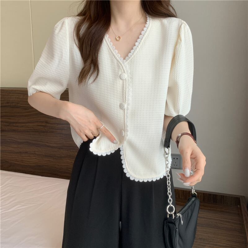 ショートトップス 夏服Vネックシャツ 夏物 SYJ53567318347