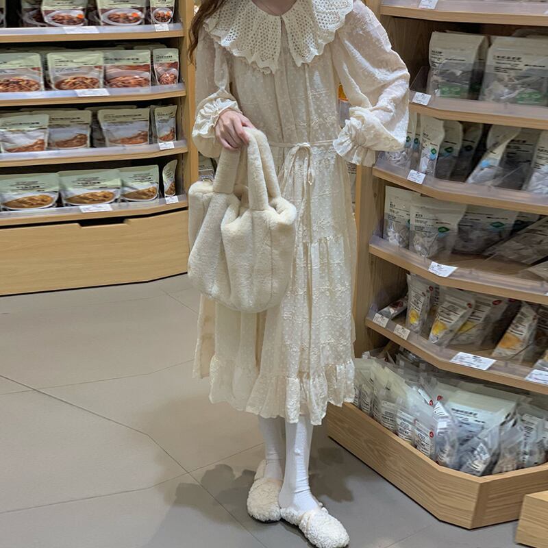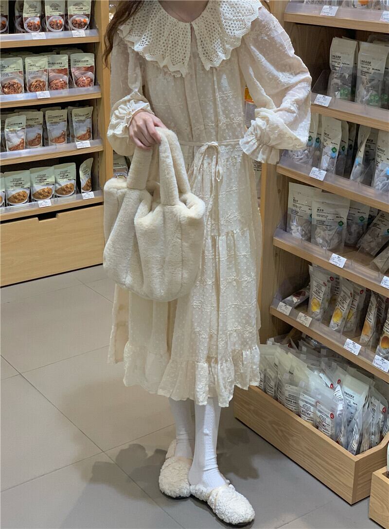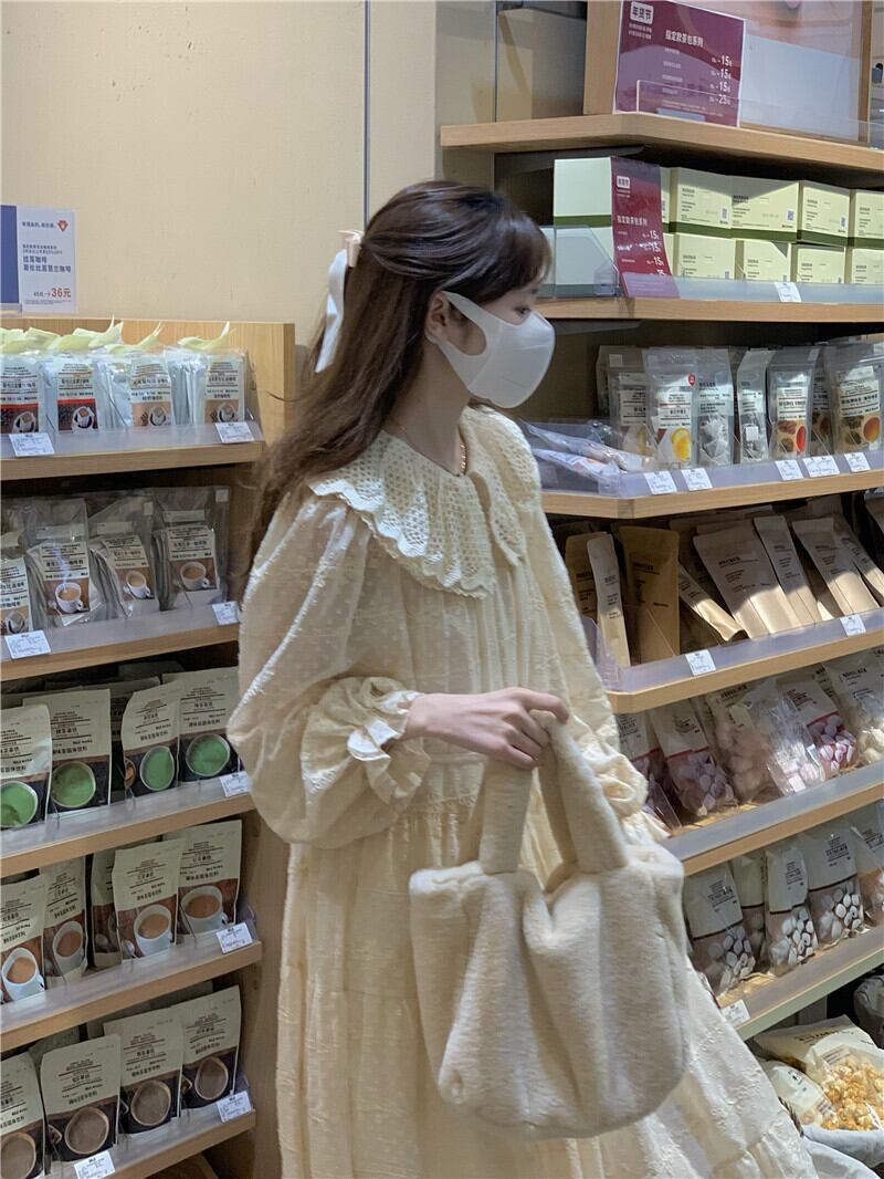 カラーワンピーススプリングゆったりスカート ロング 大人ガーリー スウィート キュート カジュアル 春物 SYJ34183645146