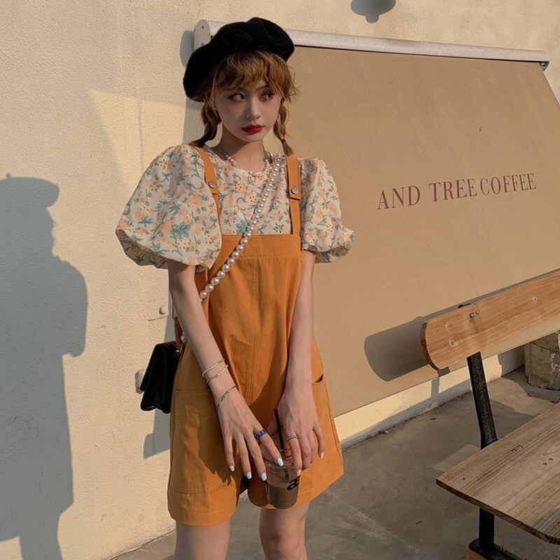色:ブルートップシングルピース,黄色のシャツワンピース,ブルービブシングルピース,黄色のオーバーオール1枚