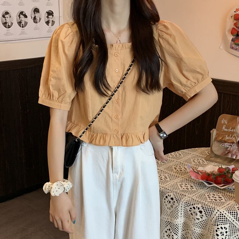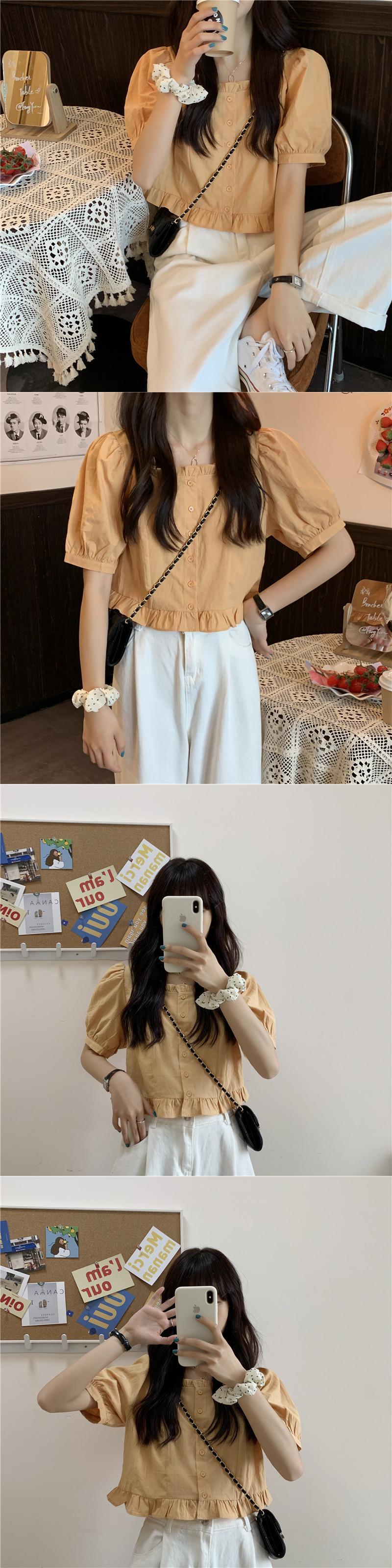 韓国ファッションスタイルショートトップス レディース夏服スリーブシャツ ピンク 大人ガーリー スウィート キュート カジュアル 夏物 SYJ8719668677