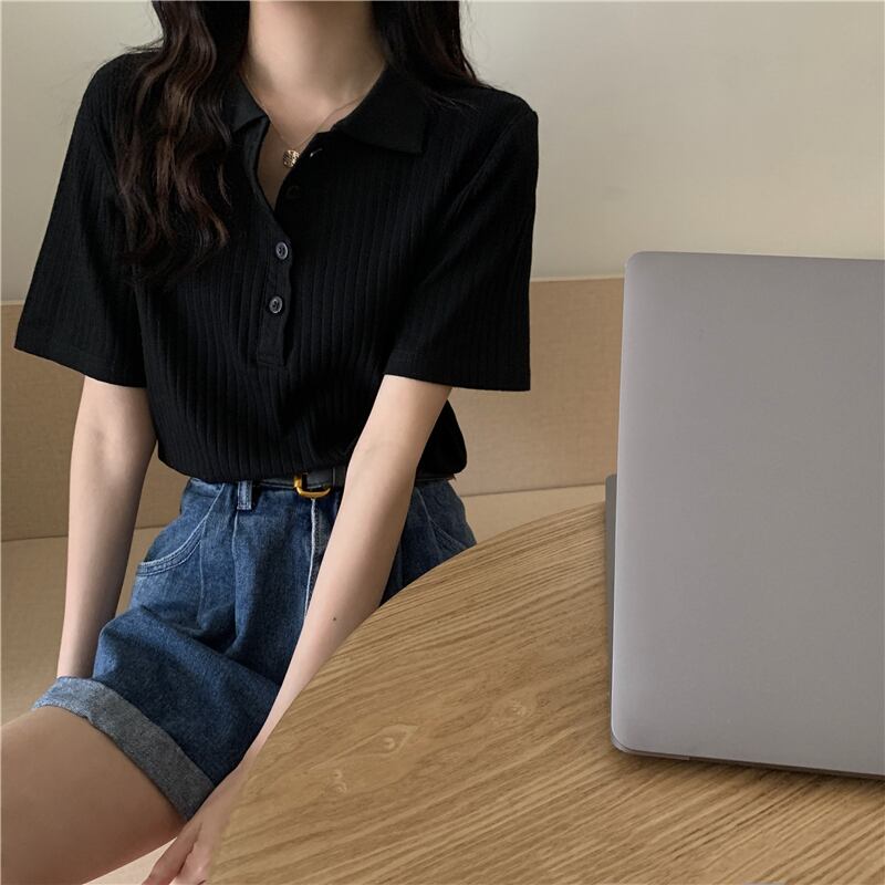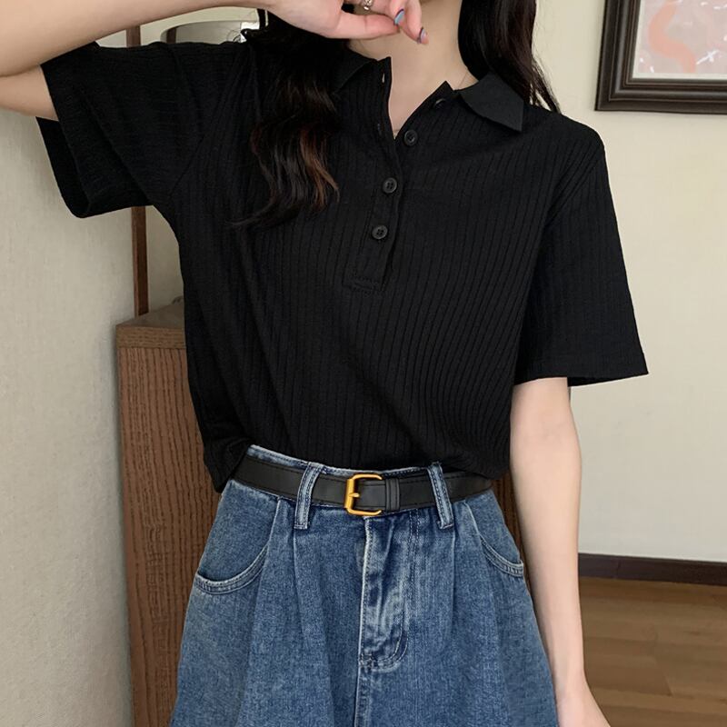 カラートップス 夏服スタンダードブラックTシャツ レトロ 夏物 SYJ24678337352