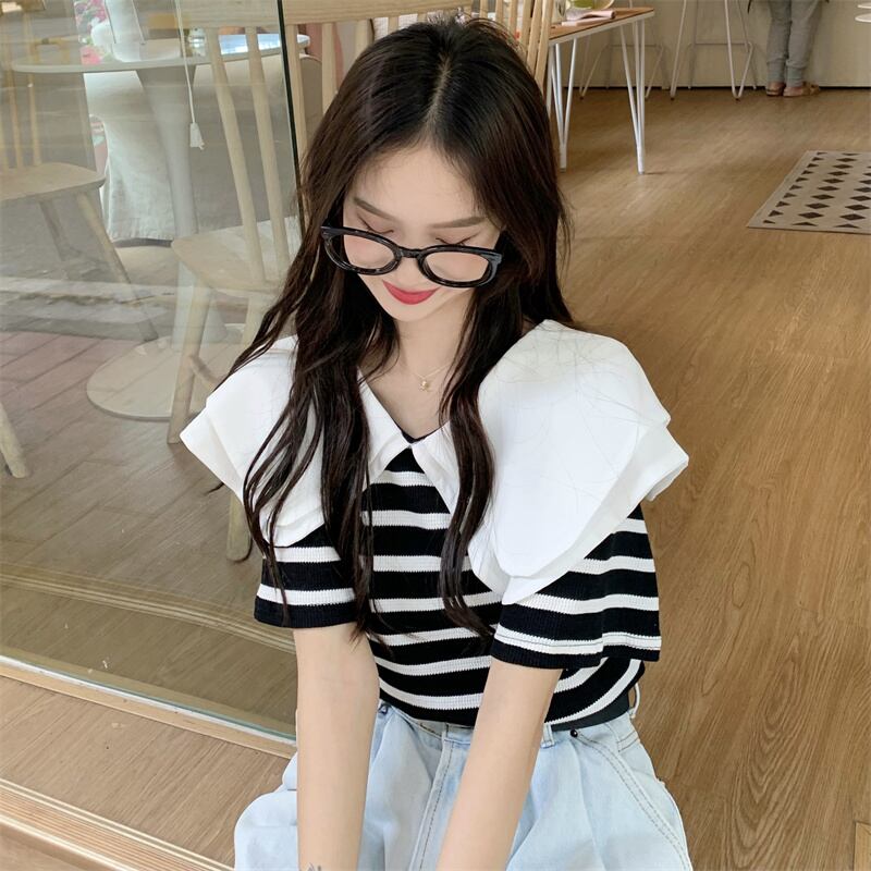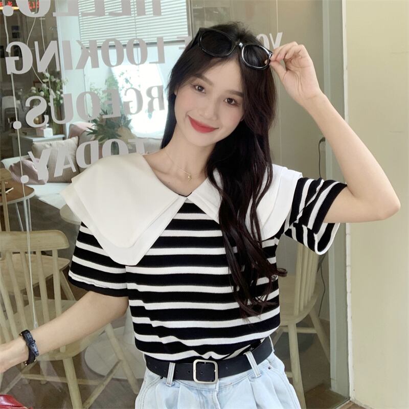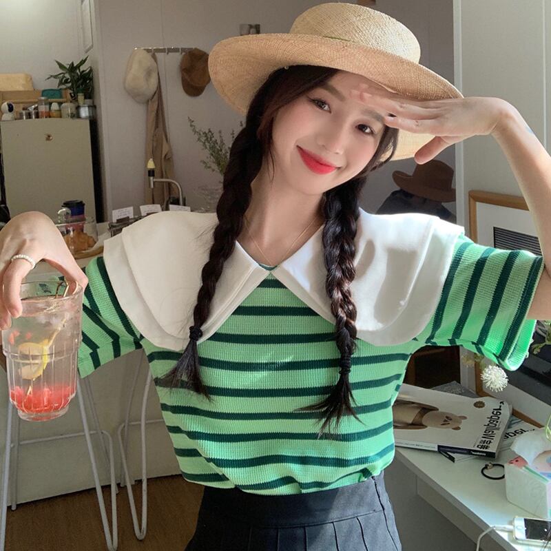 ストライプTシャツ夏服韓国ファッションカラー 大人ガーリー スウィート キュート カジュアル 夏物 SYJ73644711267
