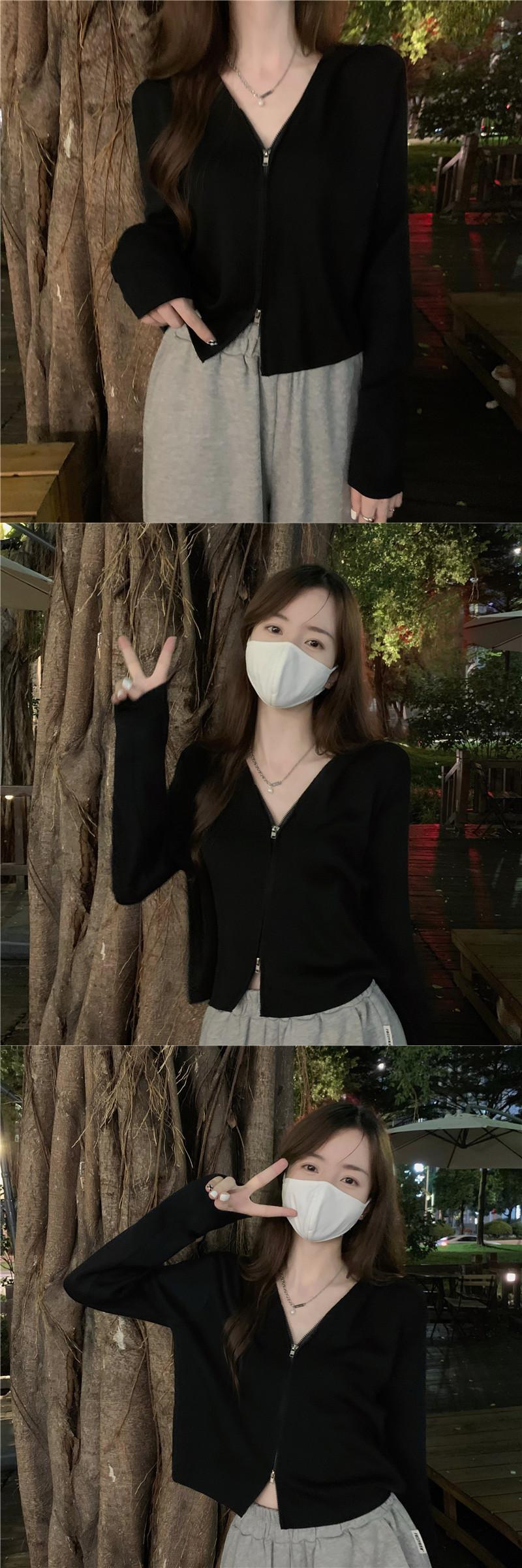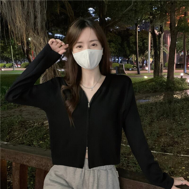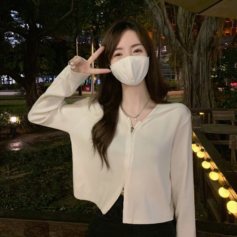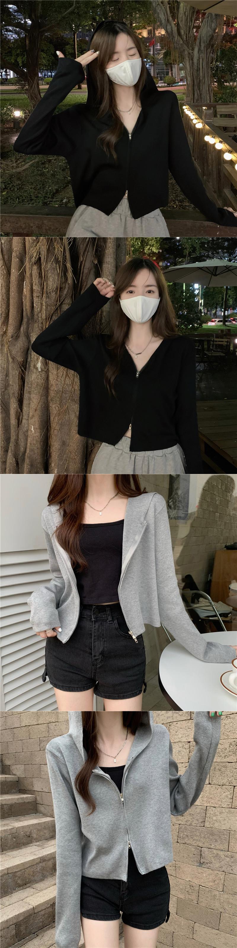 ホワイトフードニットカーディガンジッパーセーター スプリングショートトップス 春物 SYJ66259596325