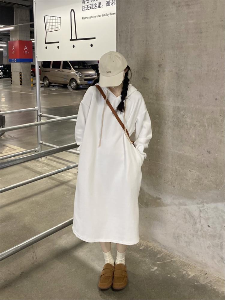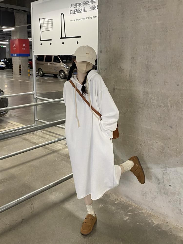 ホワイトフードセーター ワンピーススプリング秋物ルーズスカート 春物 オータム SYJ45270960343