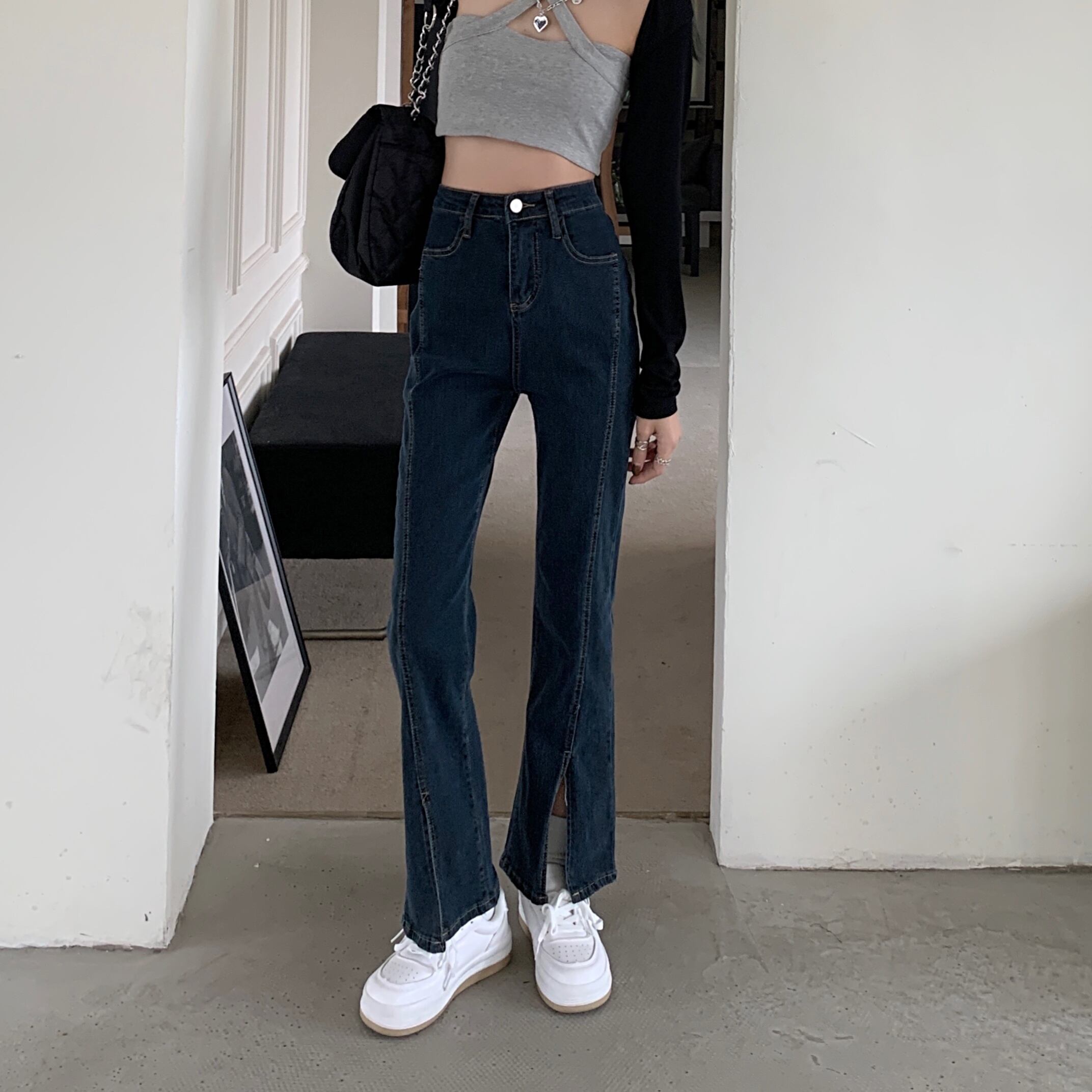 スリットジーンズ スプリングウェスト薄手パンツ 春物 ウエスト SYJ67145509344