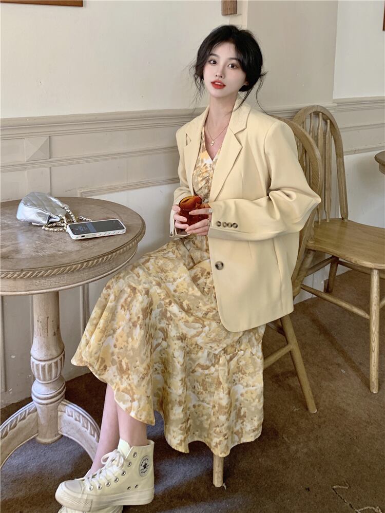 色:イエロースーツワンピース,黄色のワンピースシングル