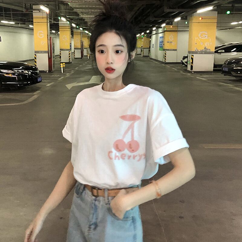 ホワイトTシャツ夏服ルーズトップス NEW コットン 夏物 SYJ43934148294