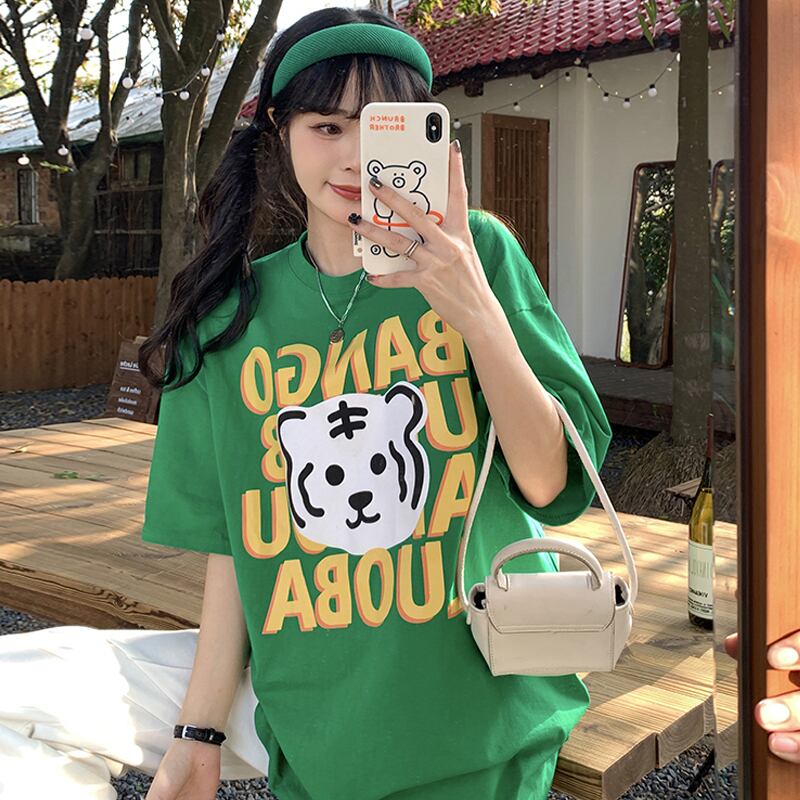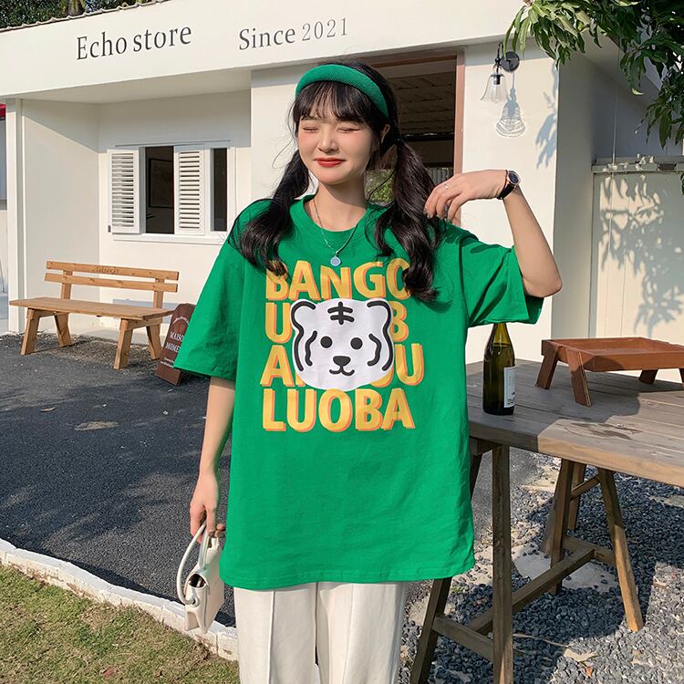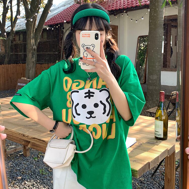グリーンTシャツ夏服ルーズトップス NEW 夏物 SYJ59954637830