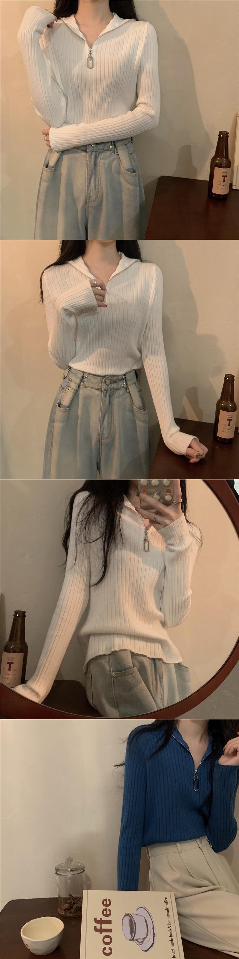 ジッパーセーター ゆったりシャツ スプリング秋物ブラックトップス 春物 オータム SYJ74638106595