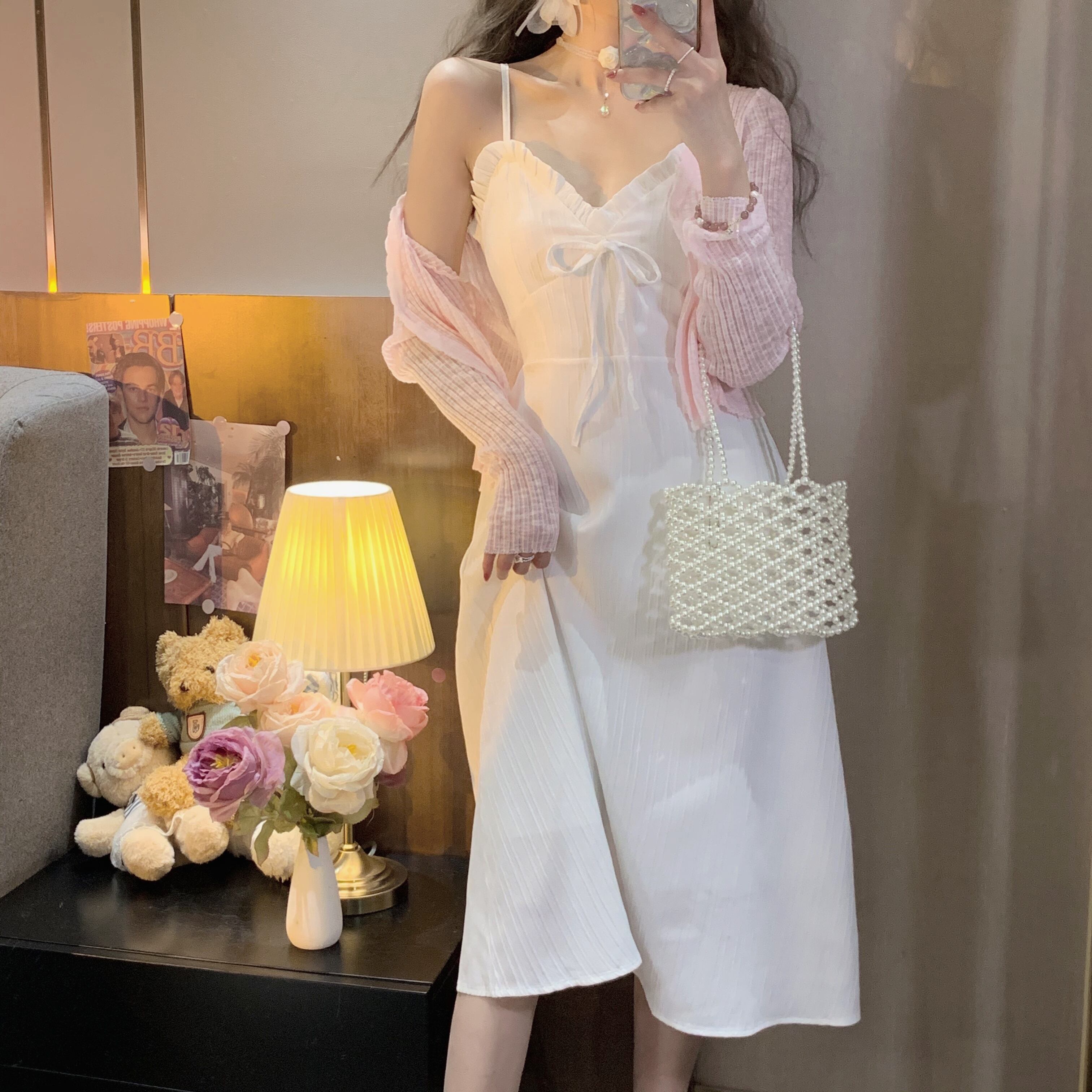 色:白いワンピースのワンピース,ピンクのワンピース,青いドレスワンピース,ホワイトカーディガンワンピース,ピンクカーディガンワンピース,ブルーカーディガンワンピース